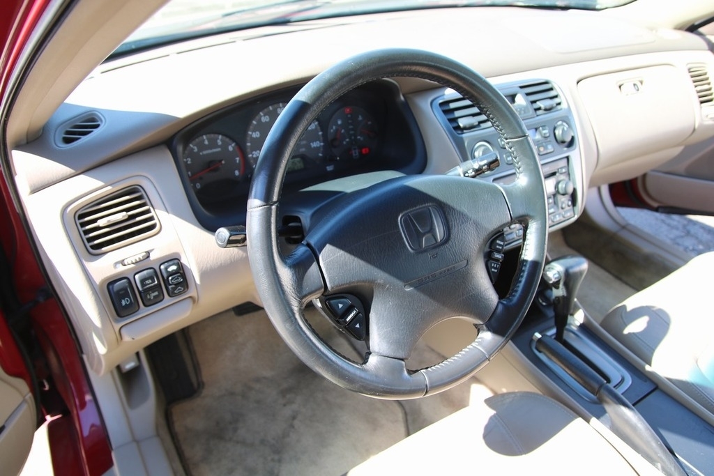 This Accord is equipped with a 3.0L 6 Cylinder engine and Automatic Transmission. Odometer shows 205,611 miles. It appears to have all the standard equipment. The exterior is Red in color and has Tan interior. Please see photos for more detailed description of vehicle and its overall condition.