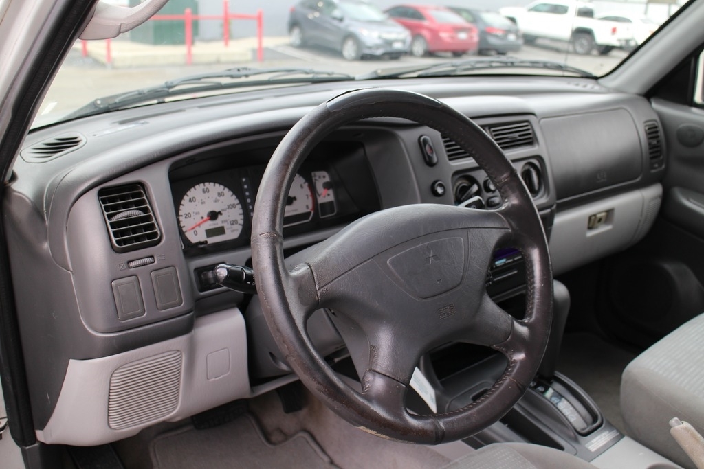 This Montero is equipped with a 3.5L 6 cylinder engine and an automatic transmission. Odometer shows 176,744 miles. It appears to have all the standard equipment. The exterior is silver in color and has gray cloth interior. Please see photos for more detailed description of vehicle and its overall condition.