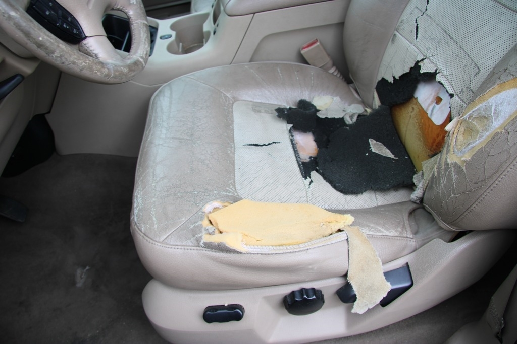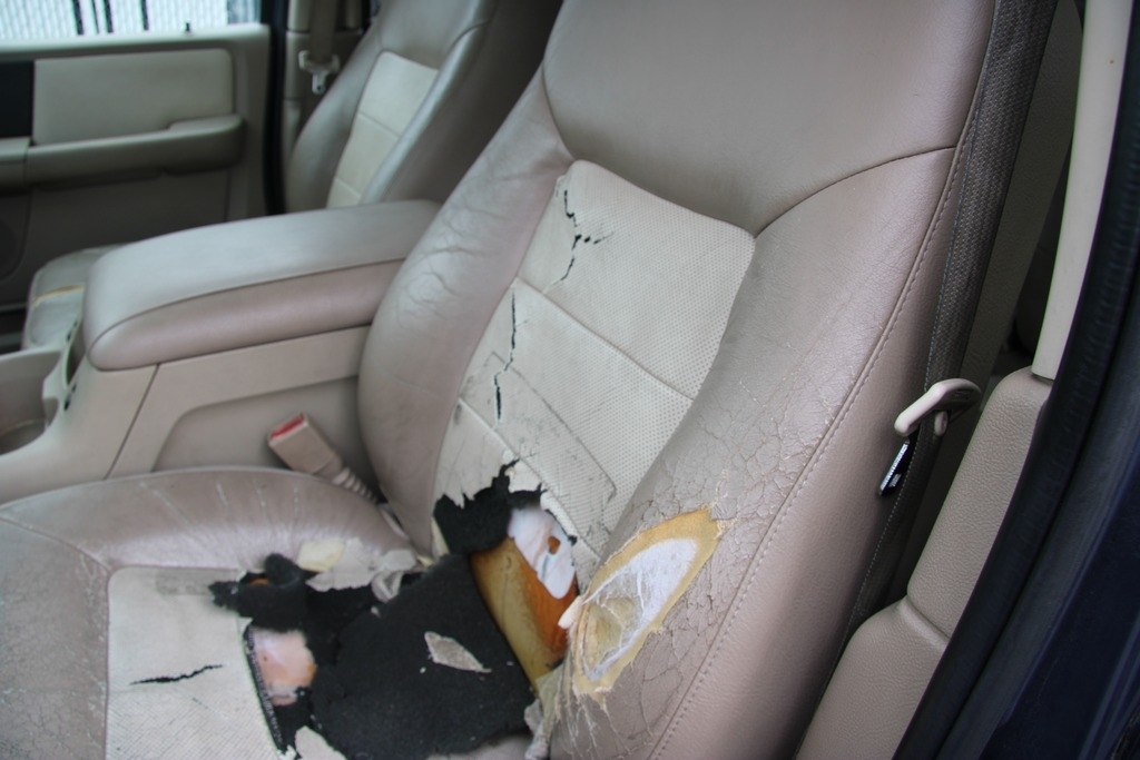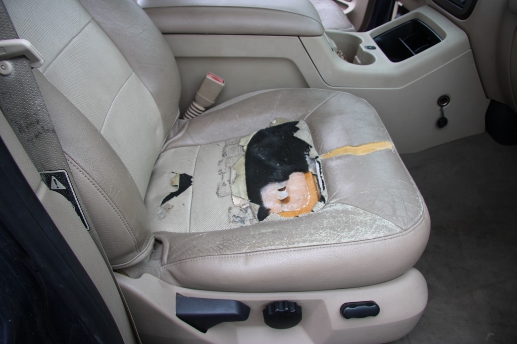 TAN LEATHER INTERIOR WITH SIGNIFICANT WEAR (PLEASE OBSERVE INTERIOR PHOTOS)