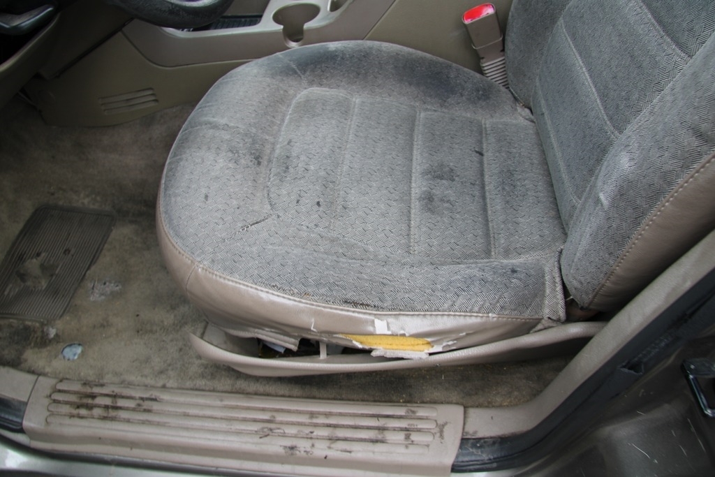 TAN CLOTH INTERIOR WITH SIGNIFICANT WEAR (PLEASE OBSERVE INTERIOR PHOTOS)