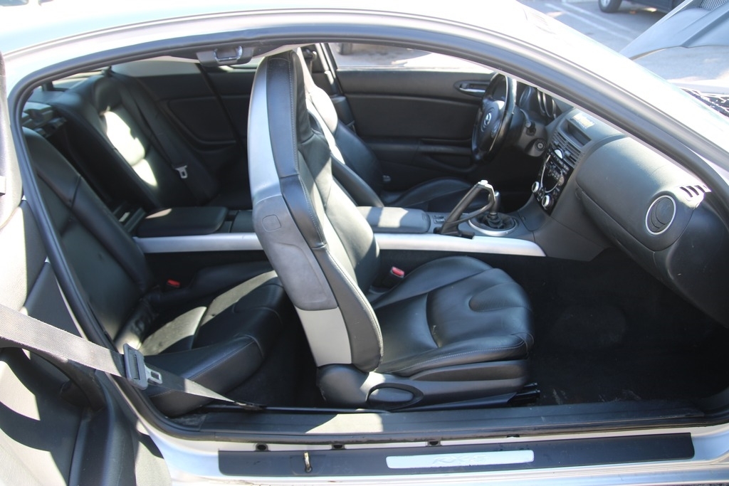 This RX-8 is equipped with a 1.3L 2 Rotor RENESIS Wankel Rotary engine and a 6-speed manual transmission. The odometer shows 100,718 low miles. It appears to have all the standard equipment for this trim level. The exterior is silver in color and has black leather interior. Please see photos for more detailed description of the vehicle and its overall condition.
