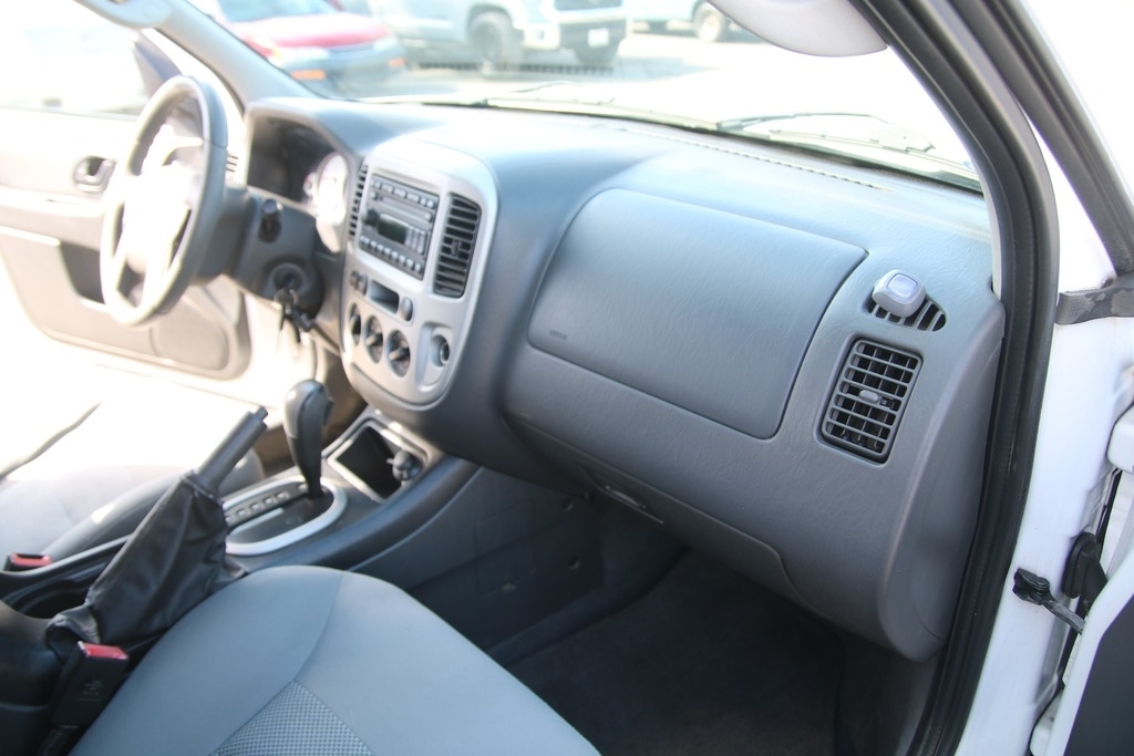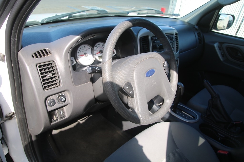 This Escape XLT is equipped with an 3.0 L 6 cylinder engine and an automatic transmission. Odometer shows 150,135 miles. It appears to have all the standard equipment. The exterior is white in color and has gray cloth interior. Please see photos for more detailed description of its overall condition..