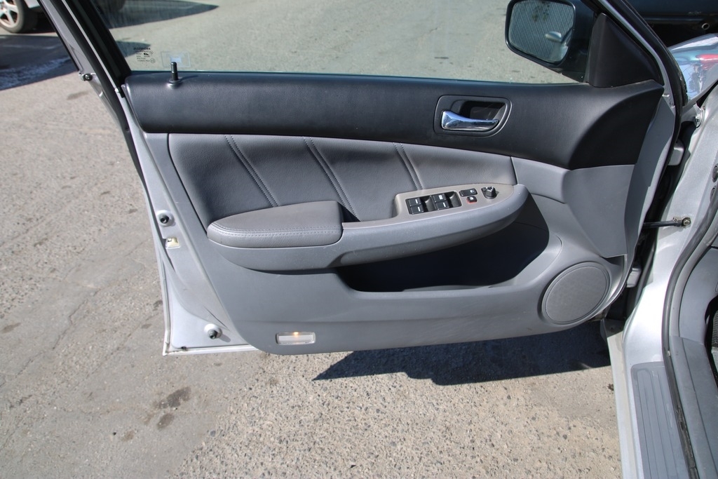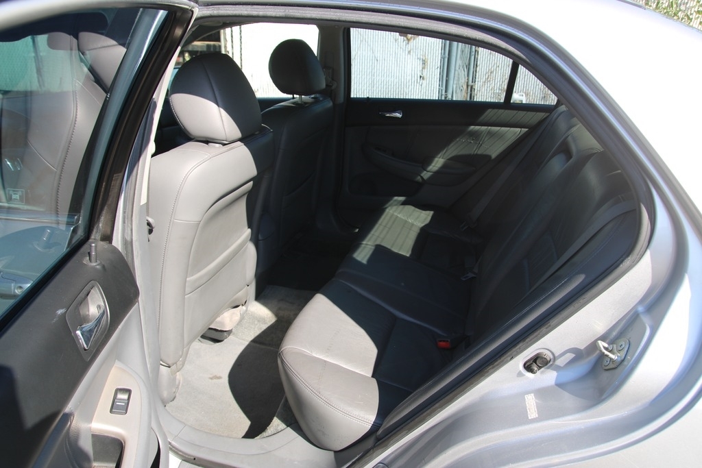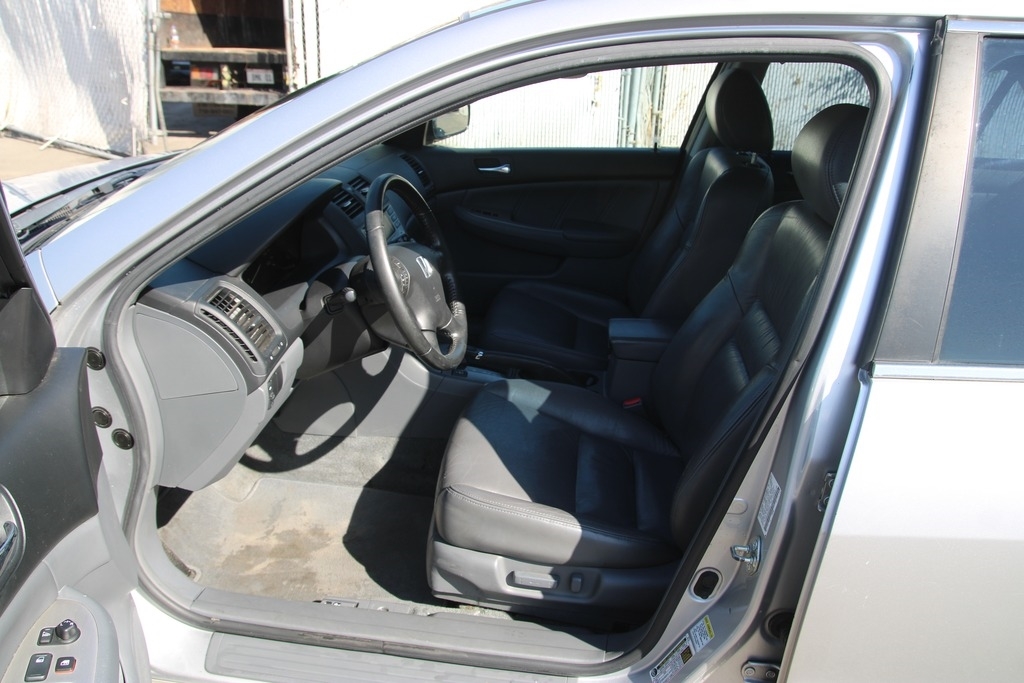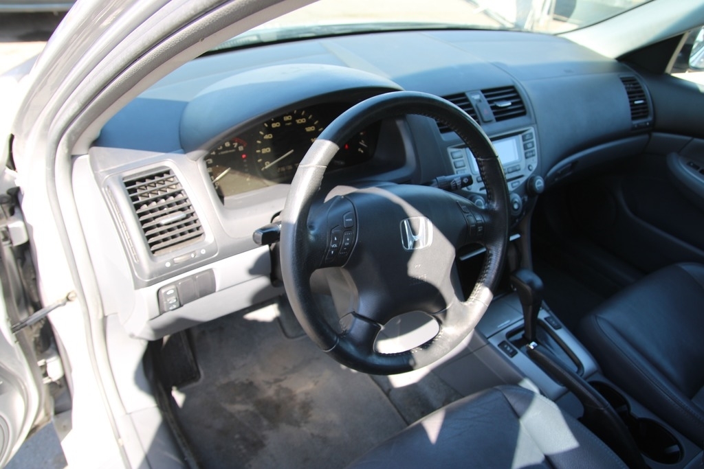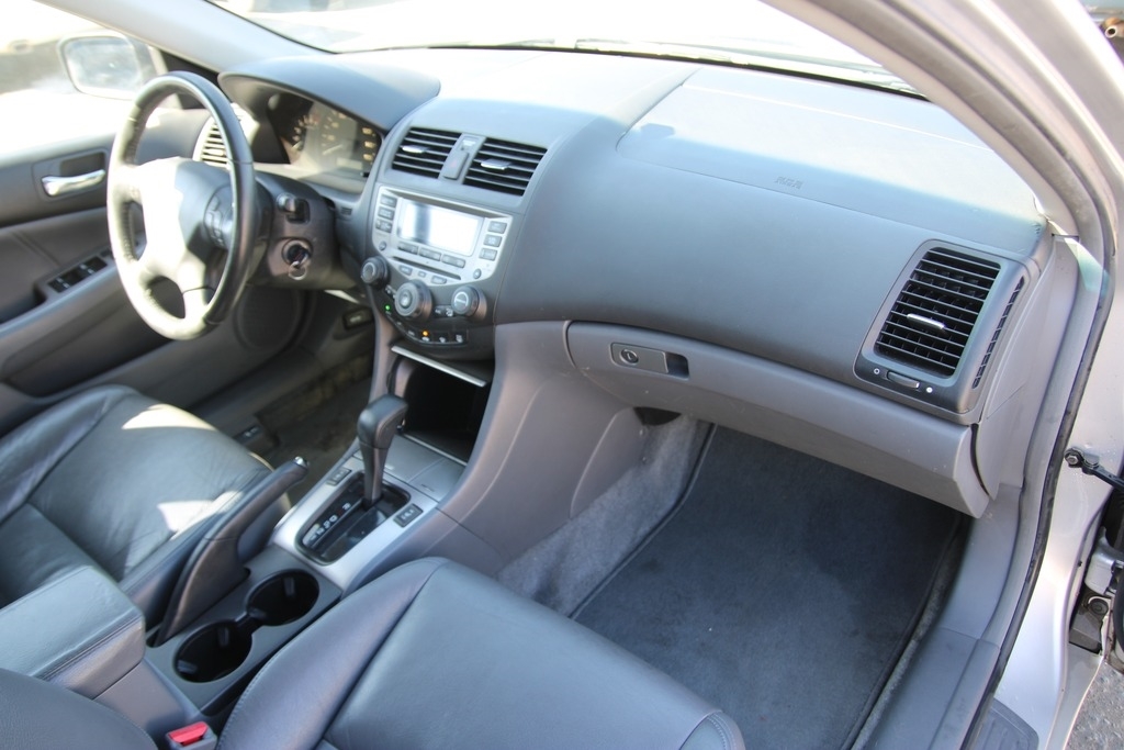 This Accord is equipped with a 2.4L 4 cylinder engine and an automatic transmission. The odometer shows 236,137 miles. It appears to have all the standard equipment for this trim level. The exterior is silver in color and has a gray leather interior. Please see photos for more detailed description of the vehicle and its overall condition.