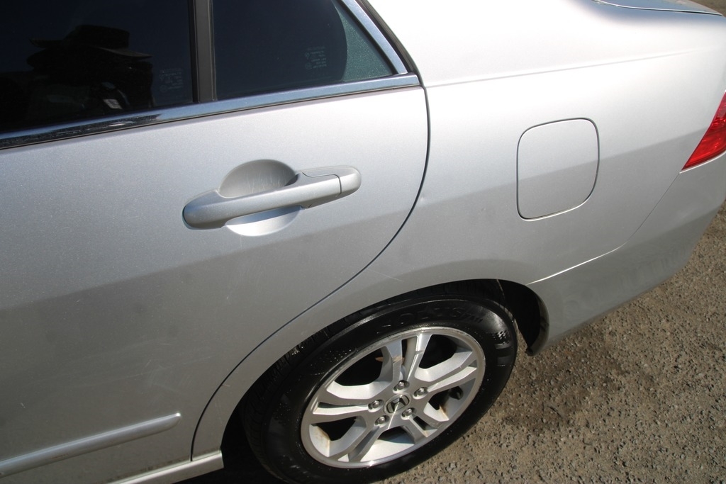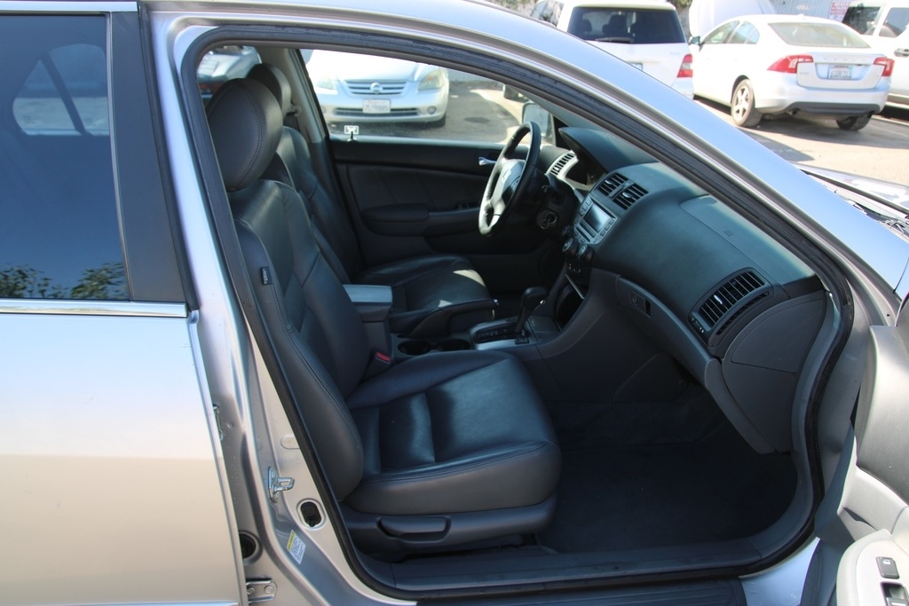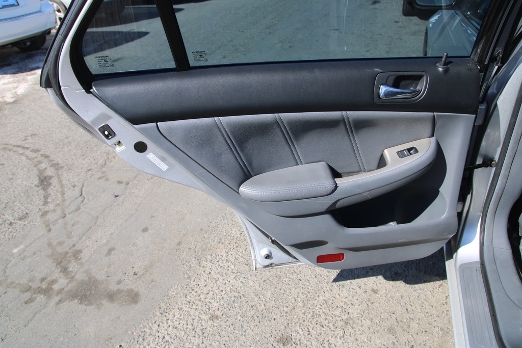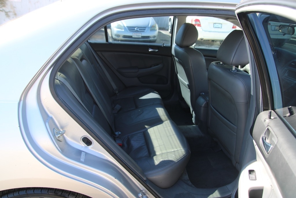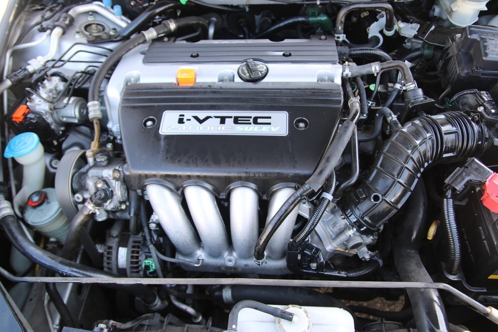 This Accord is equipped with a 2.4L 4 cylinder engine and an automatic transmission. The odometer shows 236,137 miles. It appears to have all the standard equipment for this trim level. The exterior is silver in color and has a gray leather interior. Please see photos for more detailed description of the vehicle and its overall condition.