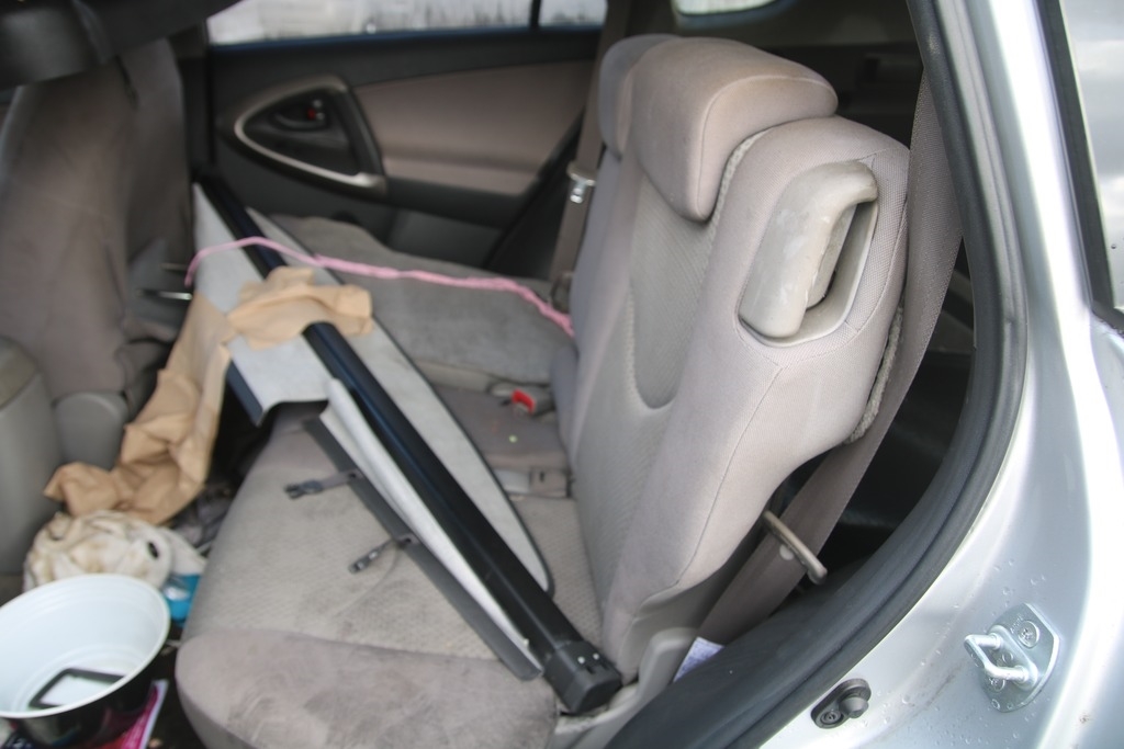GRAY CLOTH INTERIOR WITH FIRE DAMAGE (PLEASE OBSERVE INTERIOR PHOTOS)