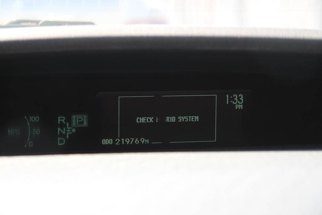 Check engine light and master warning light are on. Our OBD-II code read was connected and revealed a hybrid fault code. No further diagnosis was performed. Further diagnosis is recommended.