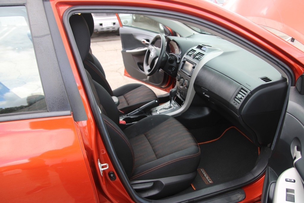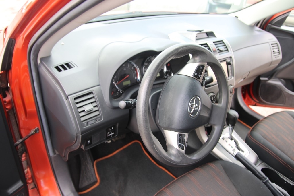 This Corolla is equipped with a 1.8L 4 cylinder engine and an automatic transmission. The odometer shows 84,781 low miles. It appears to have all the standard equipment for this trim level. The exterior is orange in color and has black and orange cloth interior. Please see photos for more detailed description of the vehicle and its overall condition.