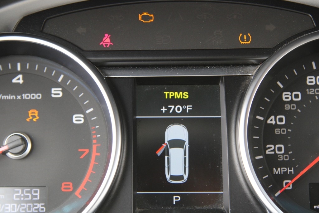 Check engine light and abs light are on. Our OBD-II code read was connected and revealed an engine fault code. No further diagnosis was performed. Further diagnosis is recommended.