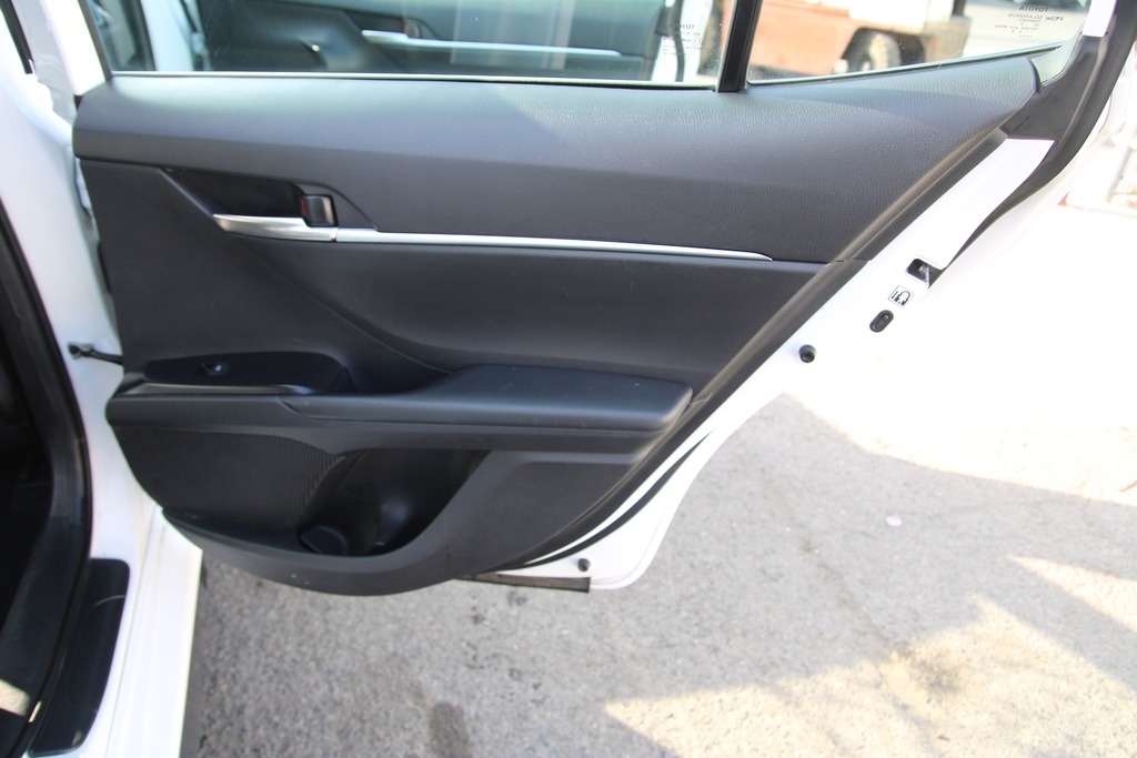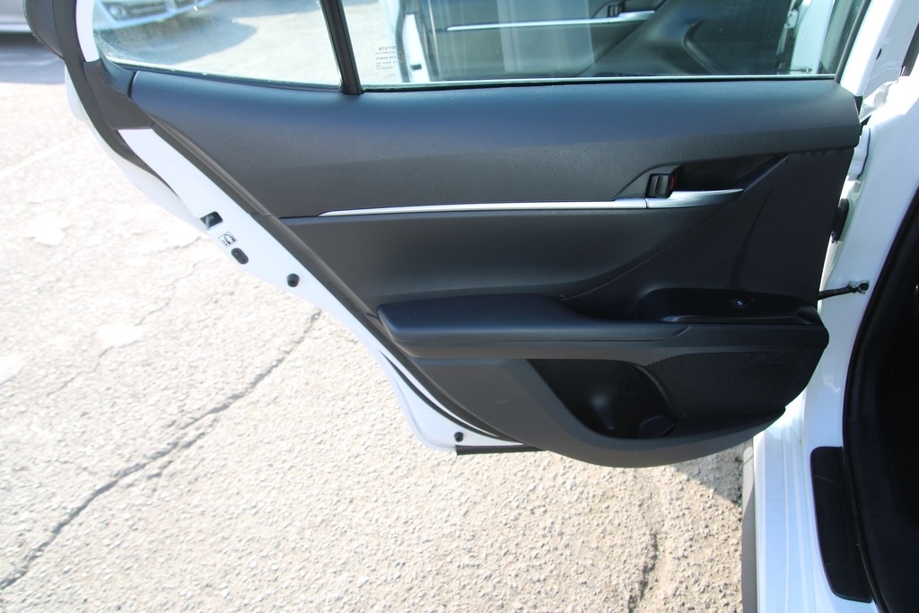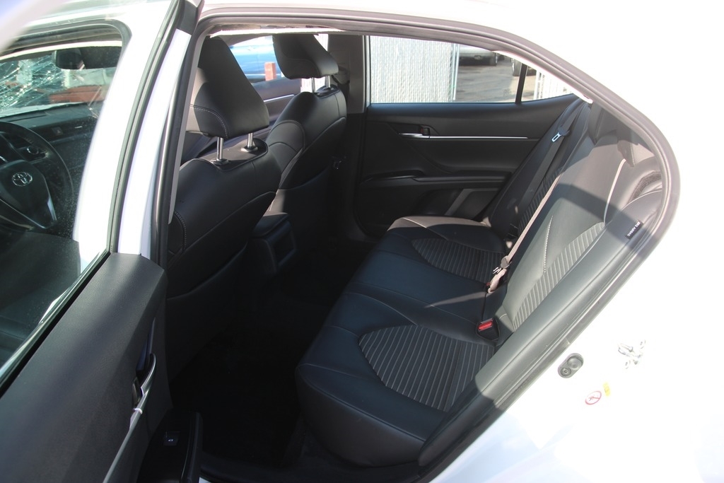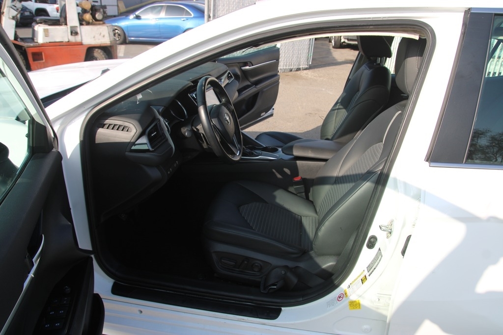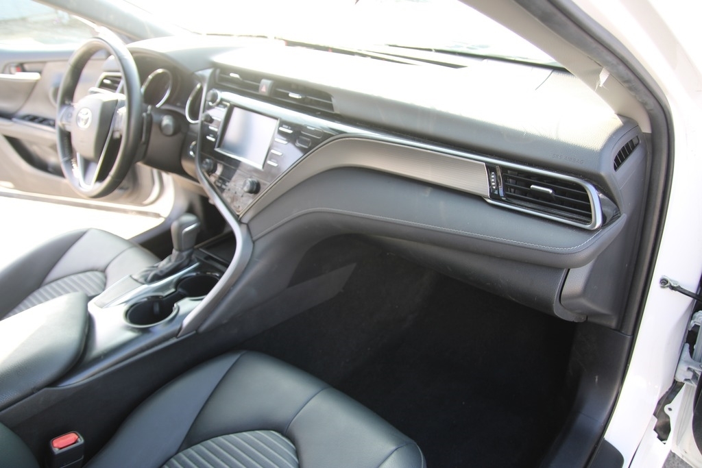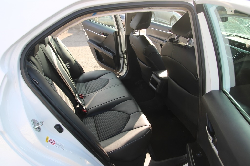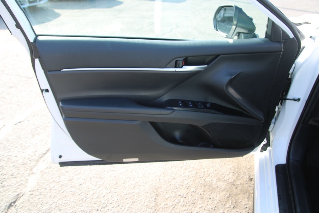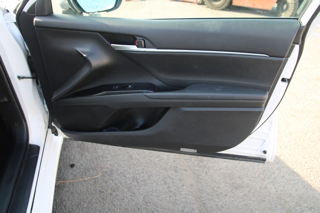 This Camry is equipped with a 2.5L 4 cylinder engine and an automatic transmission. The odometer shows 22,879 LOW miles. It appears to have all the standard equipment for this trim level. The exterior is white in color and has black leather or leather-like interior. Please see photos for more detailed description of the vehicle and its overall condition.