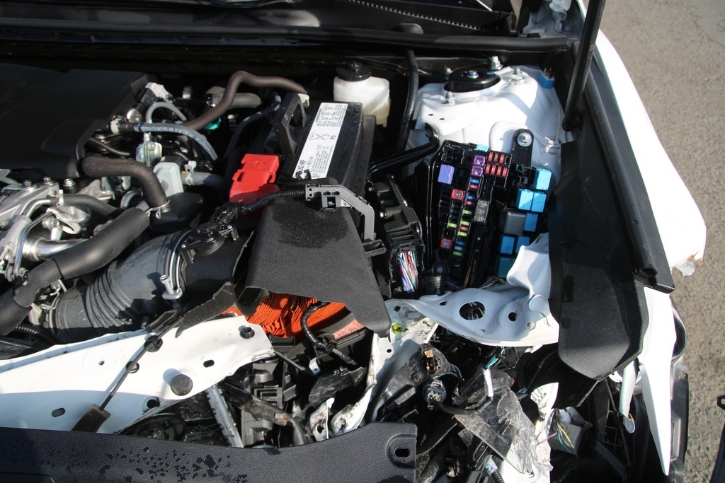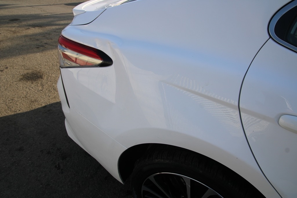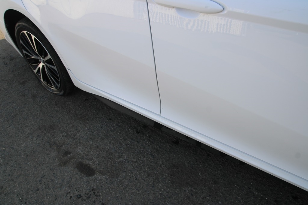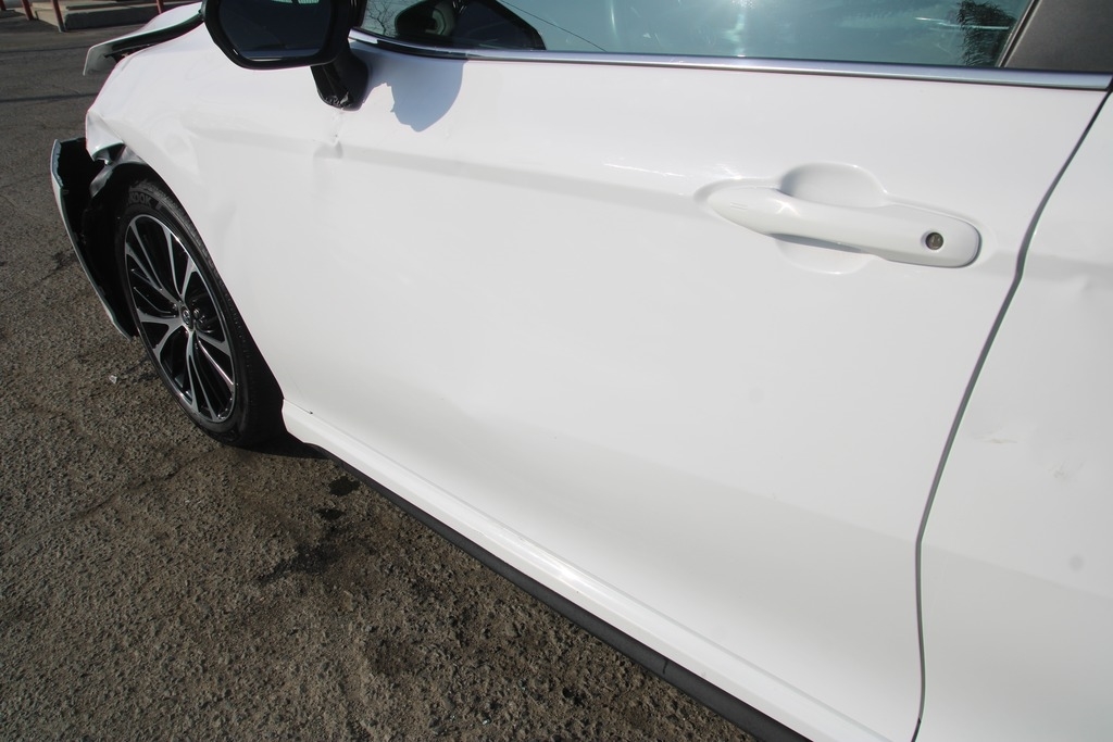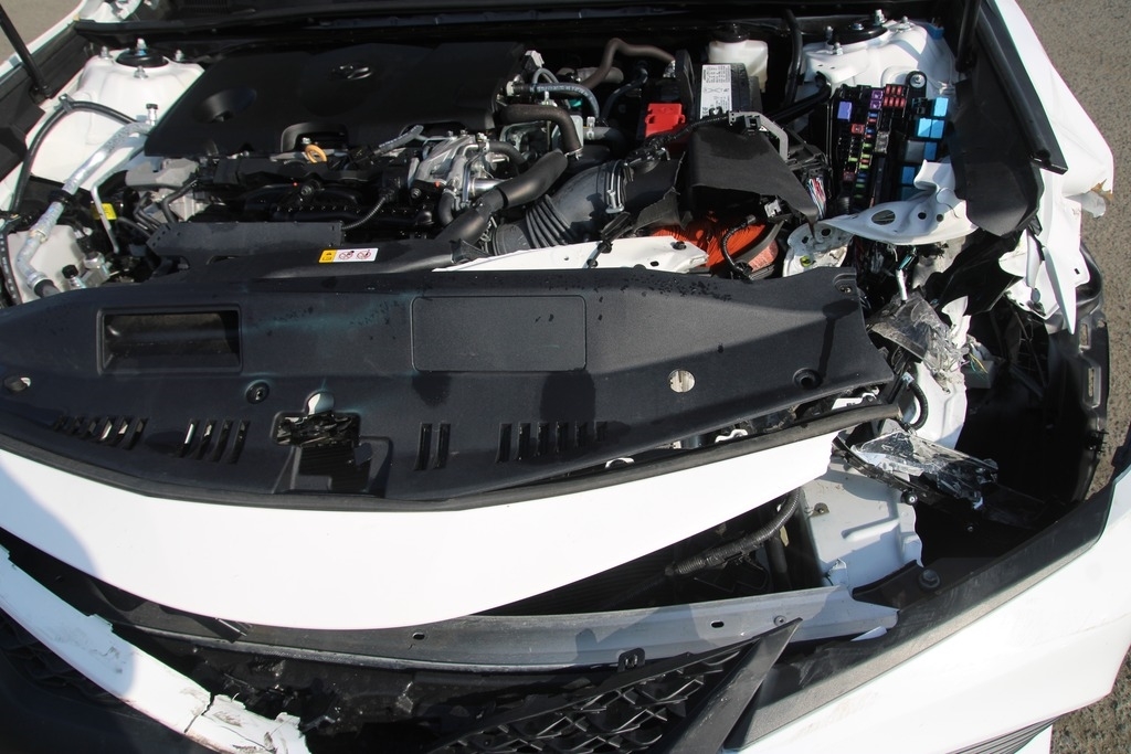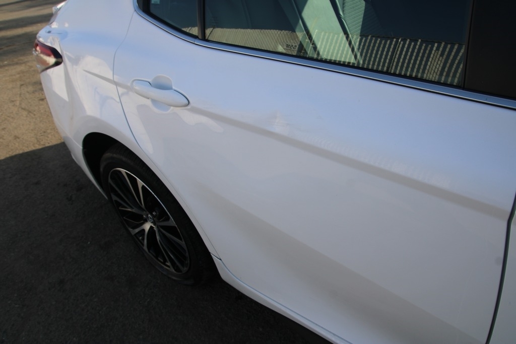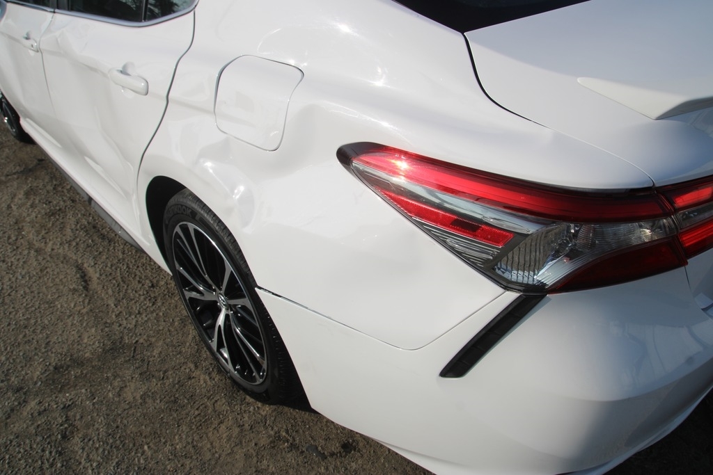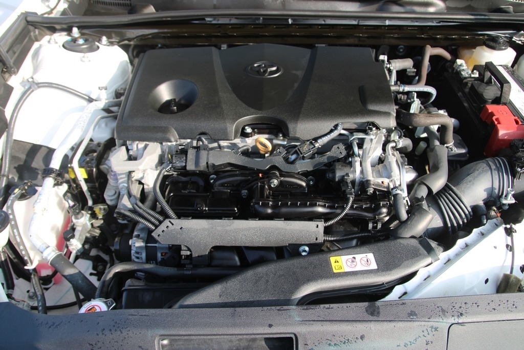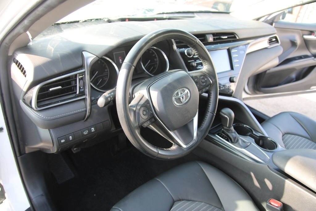 This Camry is equipped with a 2.5L 4 cylinder engine and an automatic transmission. The odometer shows 22,879 LOW miles. It appears to have all the standard equipment for this trim level. The exterior is white in color and has black leather or leather-like interior. Please see photos for more detailed description of the vehicle and its overall condition.