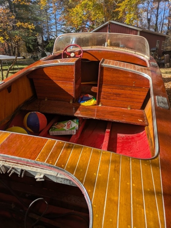 runabout ready for restoration. Perfect for collectors of vintage wooden boats