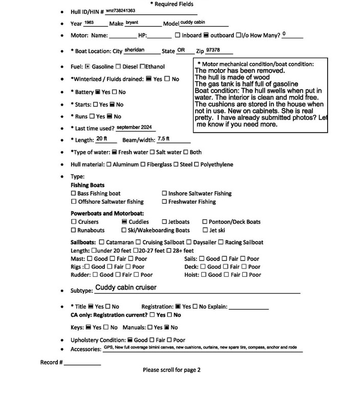 The owner says that this beautiful vintage wood boat ran last in September 2024. It is not running now as the motor has been removed.
