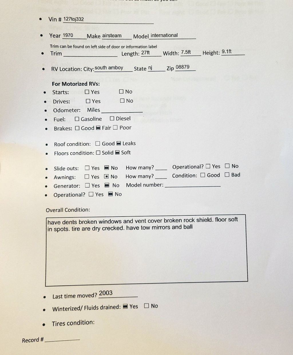 · Inspection and Acceptance: Once the buyer or their authorized agent takes possession of the vehicle, no allowances will be made for any defects or damage. It is the responsibility of the buyers or his agent to thoroughly inspect and accept the vehicle in its current state.