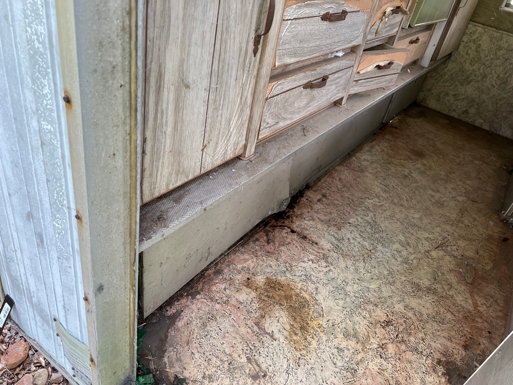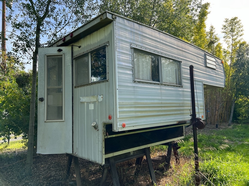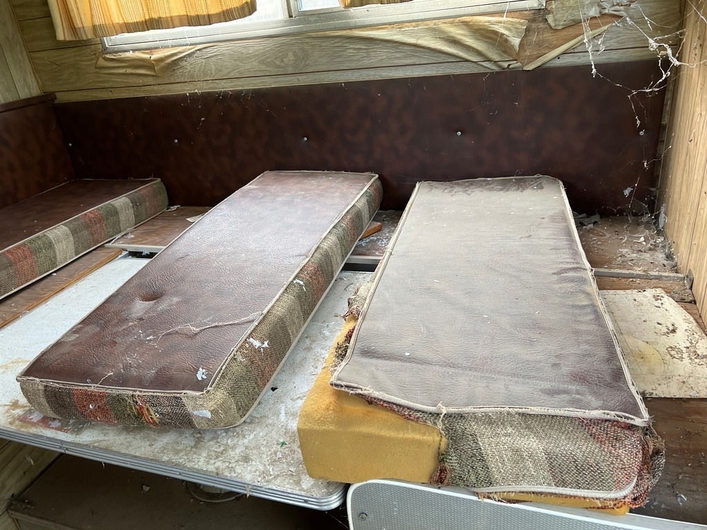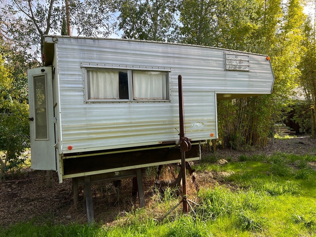 The camper was sitting on old A-frame wood pieces. It’s