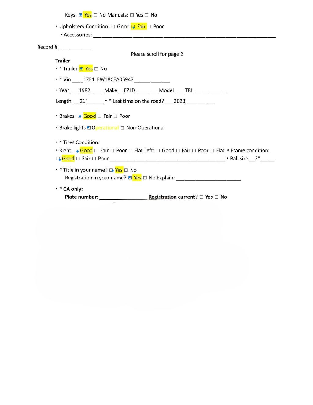 5. Repairs: The Seller assumes no responsibility for any repairs needed or required on the vehicle. Buyers should be prepared to address any necessary repairs or maintenance independently.