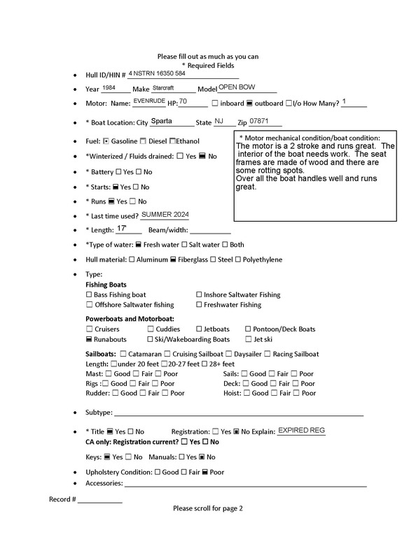 Motor runs, and the boat was in the water last year (Summer 2024).