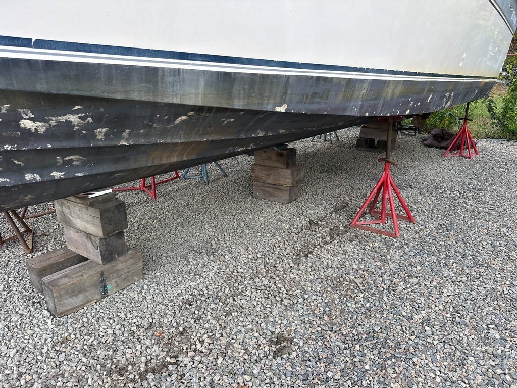 Upholstery is good and included is extra material for seats and cushions. Owner was in the process of refinishing the teak.