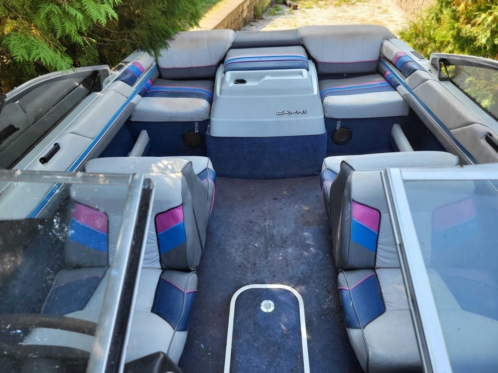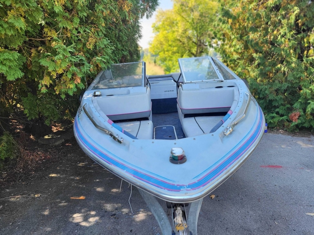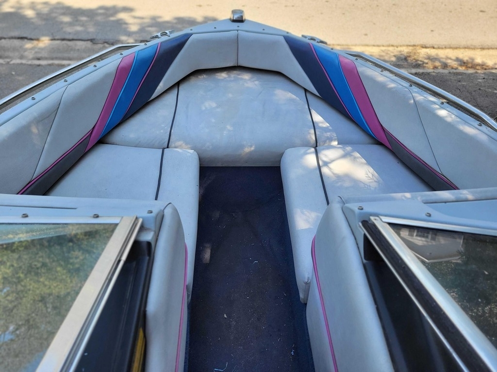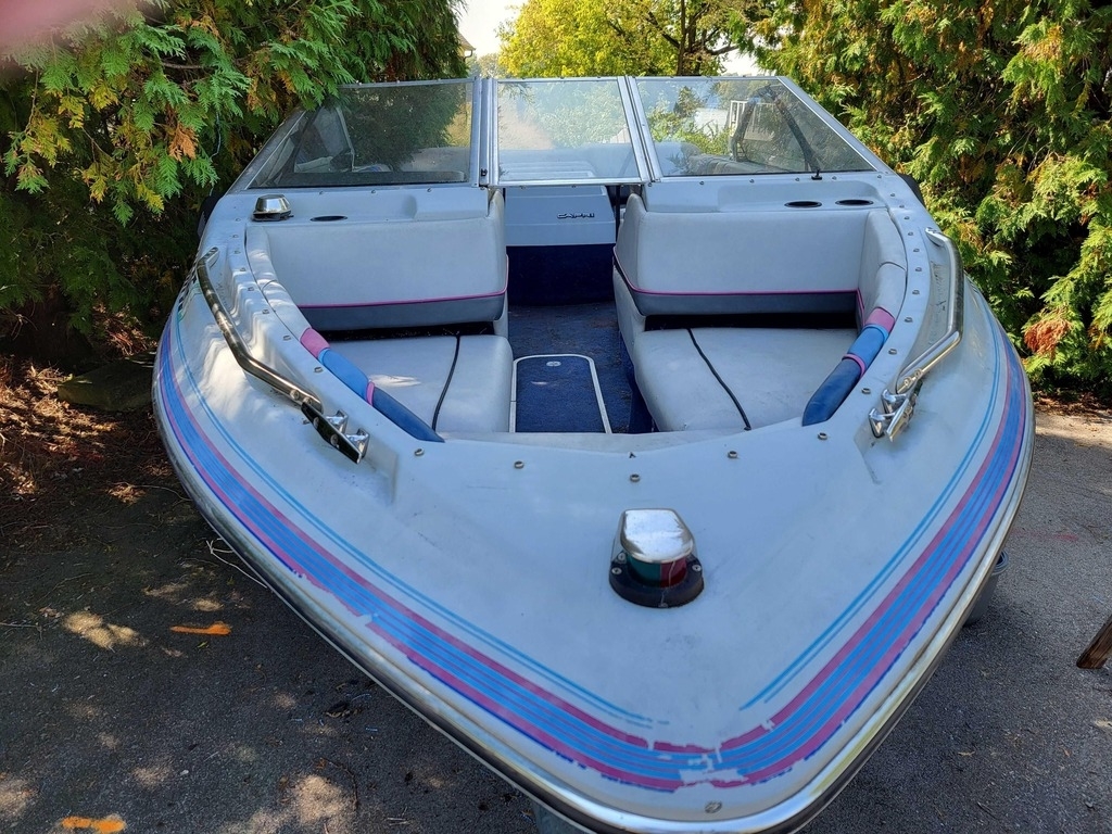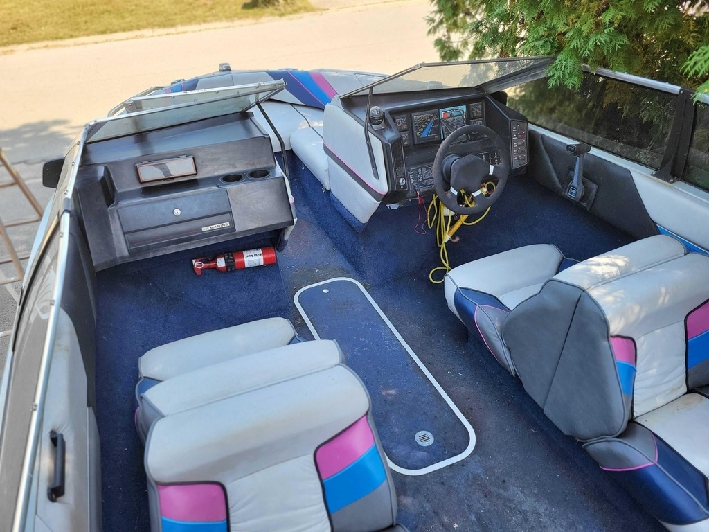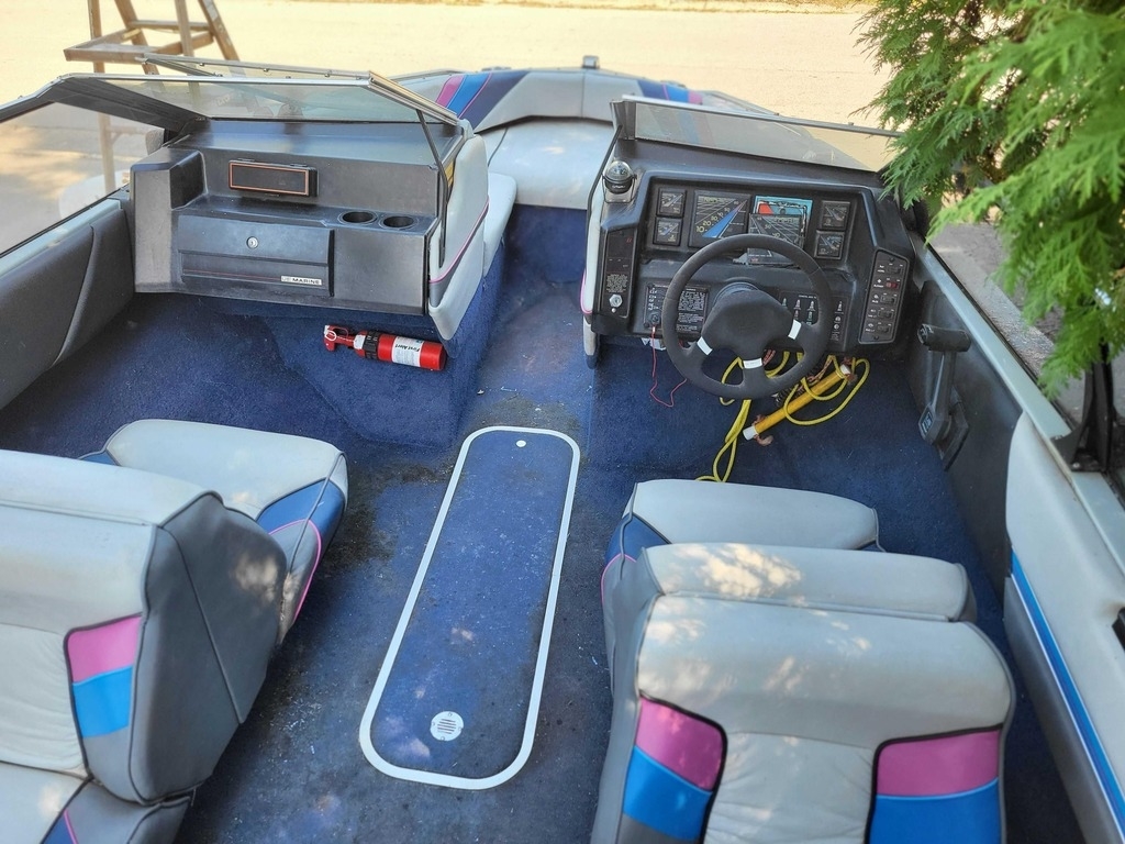 This 1989 Bayliner 1750CS Capri is a classic 17-foot bowrider with a fully enclosing canopy.
