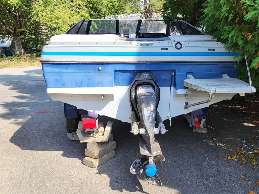 The Ford OMC 115HP inboard/outboard engine does not run, the boat has not been in the water for 10 years, and the trailer will need a plate.