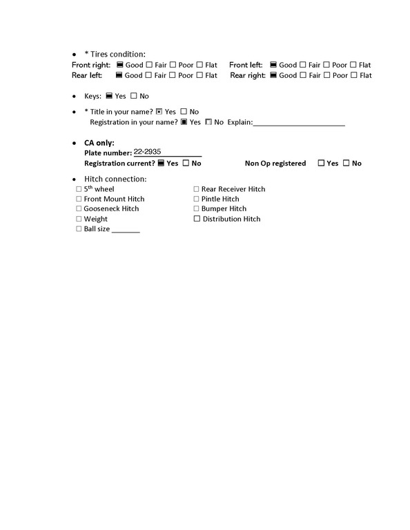 · Inspection and Acceptance: Once the buyer or their authorized agent takes possession of the vehicle, no allowances will be made for any defects or damage. It is the responsibility of the buyers or his agent to thoroughly inspect and accept the vehicle in its current state.