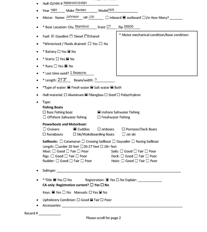 looking for a solid project or a boat to restore. Powered by a Johnson 225HP