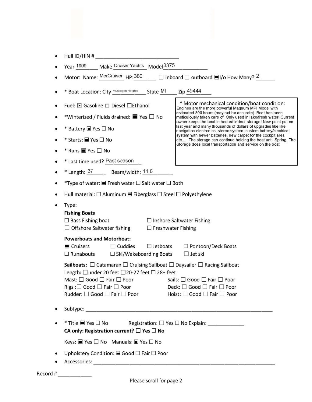 1999 Cruisers Yachts Express 3375 Fresh Water 37’ Fiberglass