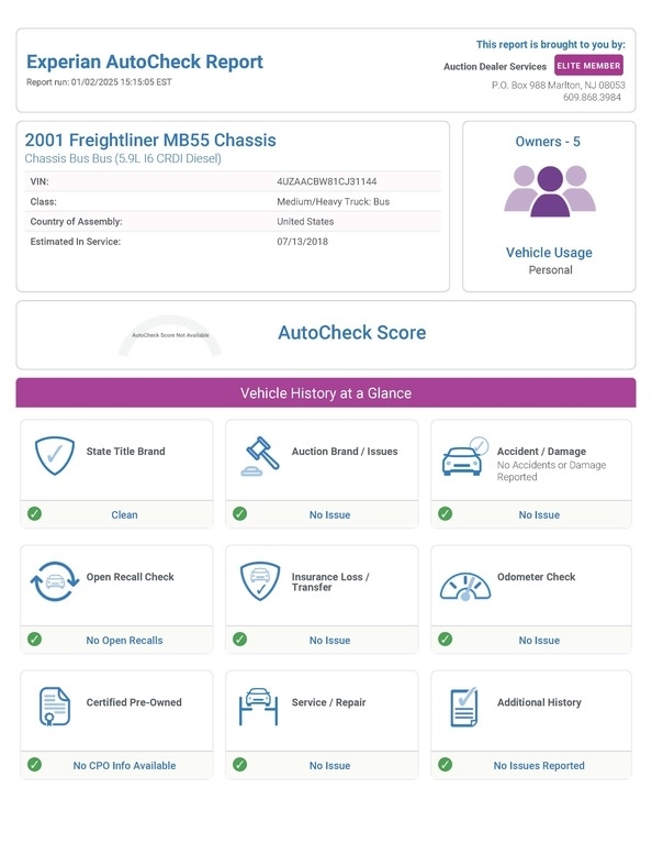 2001 Freightliner MB55 Chassis 5.9L I6 CRDI Diesel Party Bus/Limo
