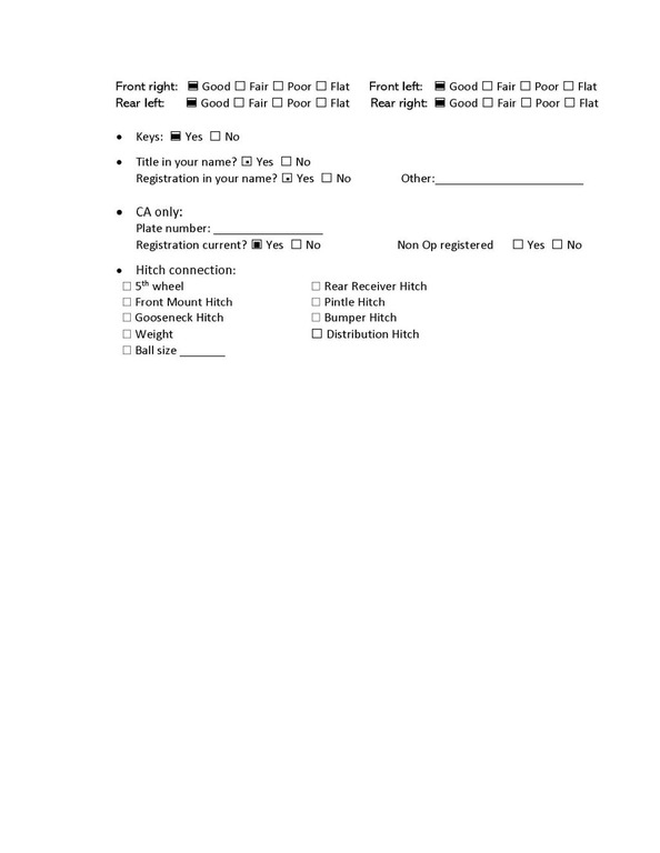 · Inspection and Acceptance: Once the buyer or their authorized agent takes possession of the vehicle, no allowances will be made for any defects or damage. It is the responsibility of the buyers or his agent to thoroughly inspect and accept the vehicle in its current state.