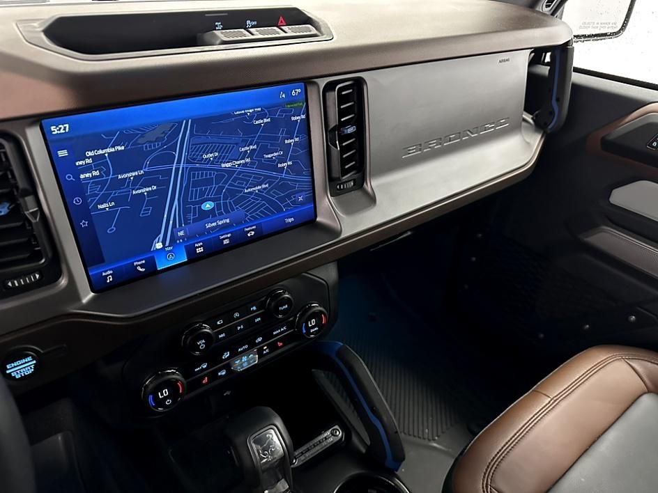 with XM/Sirus Satellite Radio you are no longer restricted by poor quality local radio stations while driving the vehicle. Anywhere on the planet, you will have hundreds of digital stations to choose from. The installed navigation system will keep you on the right path. Apple CarPlay: Seamless smartphone integration for this unit - stay connected and entertained on the go! This model offers Automatic Climate Control for personalized comfort. The rear parking assist technology on this 1/2 ton suv will put you at ease when reversing. The system alerts you as you get closer to an obstruction. This unit warns of approaching vehicles with Cross-Traffic Alert. This Ford Bronco features a hands-free Bluetooth phone system. The leather seats in the Ford Bronco are a must for buyers looking for comfort, durability, and style. Protect this vehicle from unwanted accidents with a cutting edge backup camera system. An off-road package is installed on this Ford Bronco so you are ready for your four-wheeling best.