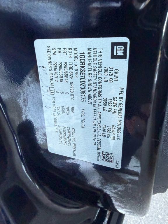 • VIN: 1GCRKSE70DZ308175