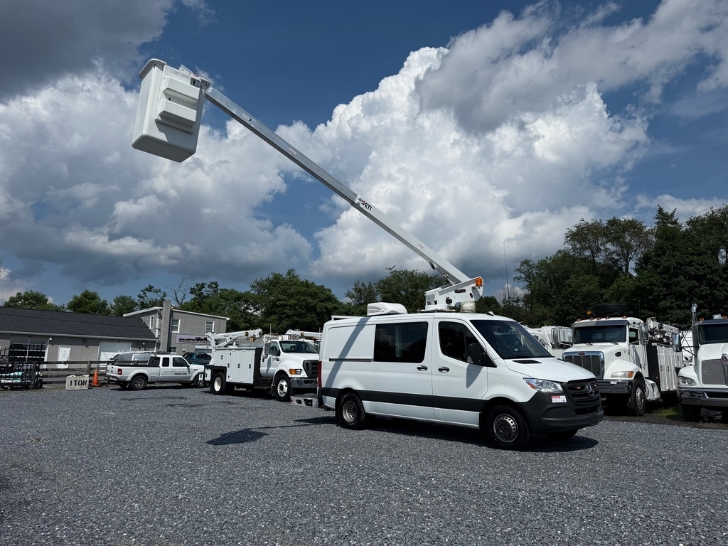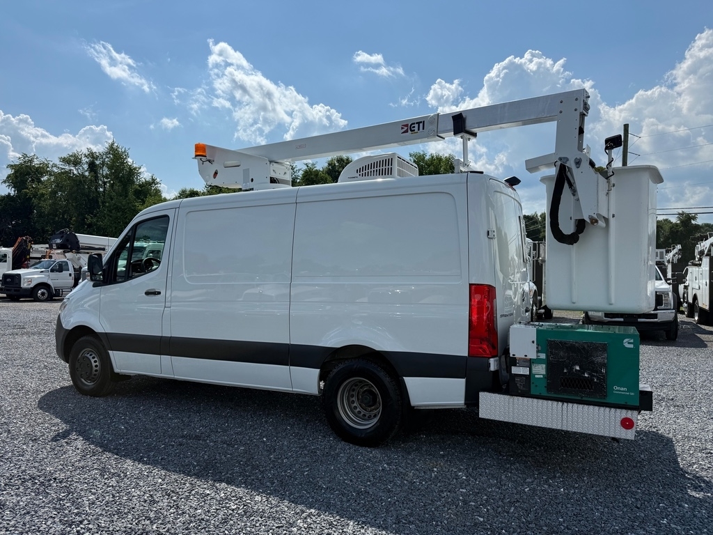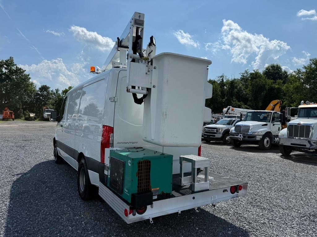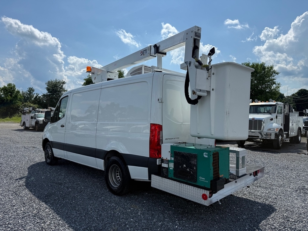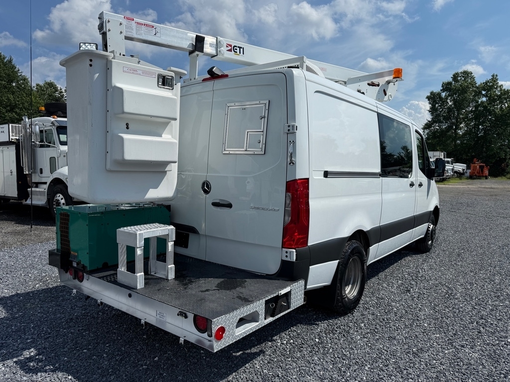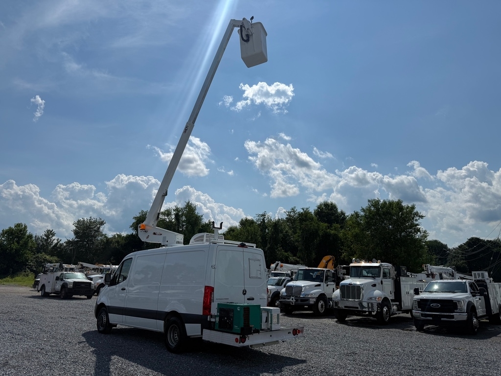 A hard to find well equipped/optioned diesel Sprinter bucket van! This bucket van starts up, runs and operates just as it should. We went over this van from top to bottom replacing parts as needed to ensure it runs, drives and operates as it should. It needs nothing but a new owner! It has very low mileage and should serve its next owner well. The 3.0L Mercedes Benz turbo diesel starts right up without any issue or hesitation and has good power. The automatic transmission shifts smoothly and as it should. The ETI ETT29SNV 34' working height boom functions without issue in both the upper and lower control stations. The functionality of the bucket is smooth and stable especially on the larger Sprinter chassis. The bucket has a hydraulic stow function. No noticeable leaks, issues or quirks are present with the boom and it operates nicely. It has a electric over hydraulic PTO which powers the boom. It has a Cummins ONAN QD diesel generator that starts right up and sounds great. The rear work area of the van is equipped with a rooftop AC unit, shelving for storage, a workbench, interior lighting, splice door & more. This van is perfect for fiber splicing or electrical work and has plenty of room to move about in the rear work area. The exterior of the van is very presentable with minor imperfections to be expected such as dings, dents, previous paintwork and scratches. The interior is in good condition and shows well with only light wear to be expected. The frame and underside is in great condition with no major rust present. The van runs down the road VERY nicely for a bucket van. All tires are good usable condition with deep tread remaining. The brakes feel strong and stop the van as they should. The van is equipped with a working backup camera. Overall, this is a nice bucket van you could hop in and get to work. These vans are very versatile and handle the added weight very well. Extremely hard to find a good bucket van like this! Buy today, go to work tomorrow! Please view all pictures and attached video for an accurate representation of the van. We are located in Clarksville, Maryland 21029. For any further questions or a shipping quote feel free to contact us. Thank you for looking.