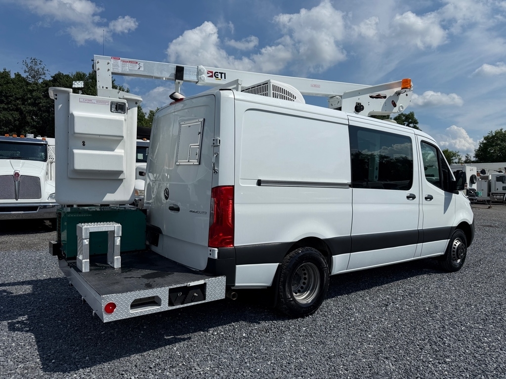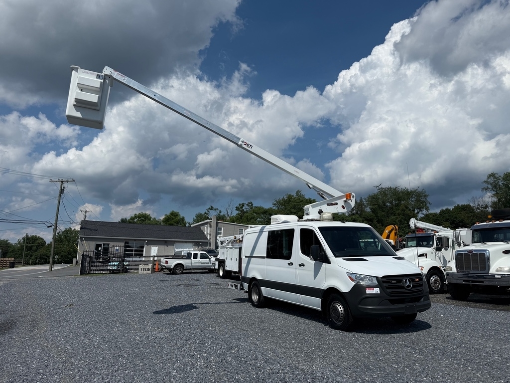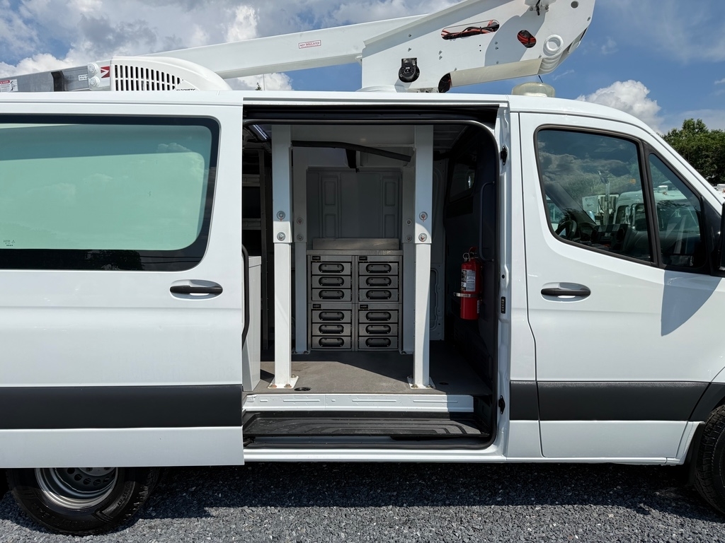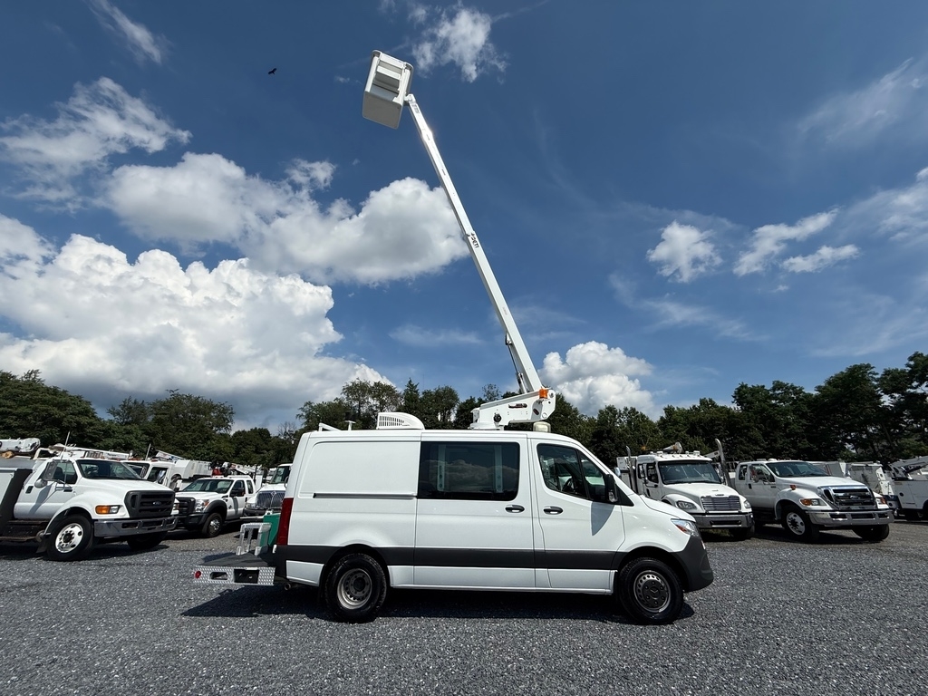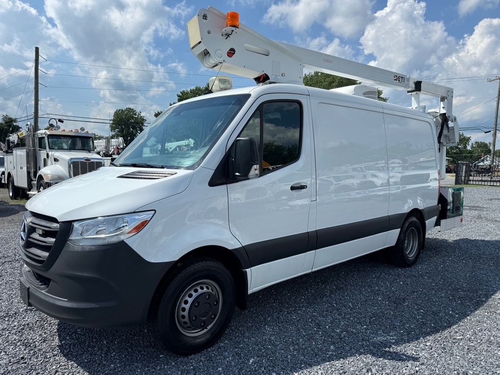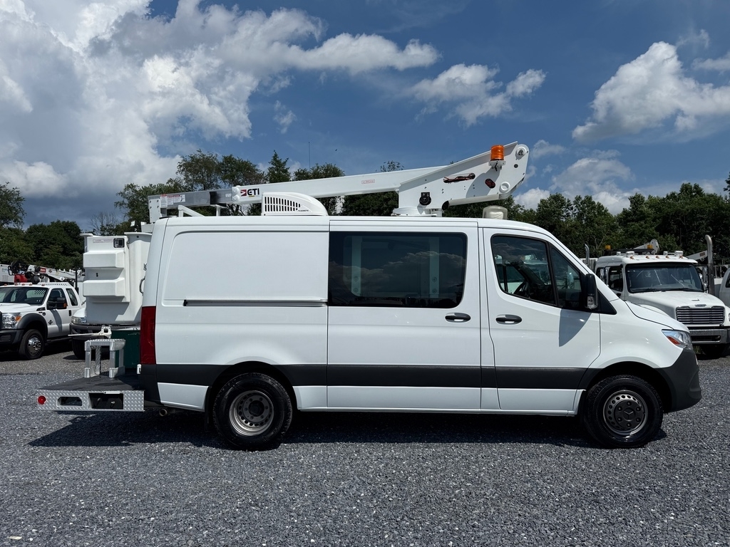 A hard to find well equipped/optioned diesel Sprinter bucket van! This bucket van starts up, runs and operates just as it should. We went over this van from top to bottom replacing parts as needed to ensure it runs, drives and operates as it should. It needs nothing but a new owner! It has very low mileage and should serve its next owner well. The 3.0L Mercedes Benz turbo diesel starts right up without any issue or hesitation and has good power. The automatic transmission shifts smoothly and as it should. The ETI ETT29SNV 34' working height boom functions without issue in both the upper and lower control stations. The functionality of the bucket is smooth and stable especially on the larger Sprinter chassis. The bucket has a hydraulic stow function. No noticeable leaks, issues or quirks are present with the boom and it operates nicely. It has a electric over hydraulic PTO which powers the boom. It has a Cummins ONAN QD diesel generator that starts right up and sounds great. The rear work area of the van is equipped with a rooftop AC unit, shelving for storage, a workbench, interior lighting, splice door & more. This van is perfect for fiber splicing or electrical work and has plenty of room to move about in the rear work area. The exterior of the van is very presentable with minor imperfections to be expected such as dings, dents, previous paintwork and scratches. The interior is in good condition and shows well with only light wear to be expected. The frame and underside is in great condition with no major rust present. The van runs down the road VERY nicely for a bucket van. All tires are good usable condition with deep tread remaining. The brakes feel strong and stop the van as they should. The van is equipped with a working backup camera. Overall, this is a nice bucket van you could hop in and get to work. These vans are very versatile and handle the added weight very well. Extremely hard to find a good bucket van like this! Buy today, go to work tomorrow! Please view all pictures and attached video for an accurate representation of the van. We are located in Clarksville, Maryland 21029. For any further questions or a shipping quote feel free to contact us. Thank you for looking.