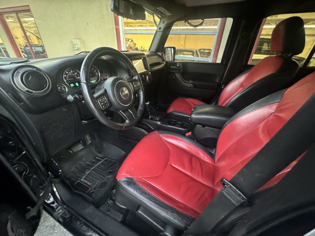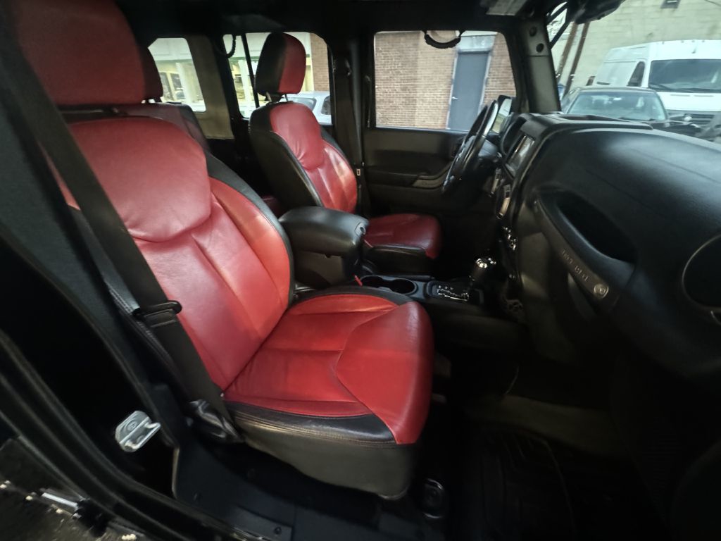 This is an awesome custom Jeep Wrangler loaded with tons of custom upgrades! This Jeep has a custom 2 tone red/black leather interior. The headunit has been upgraded to a top of the line touch screen Apple Carplay/Android Auto compatible headunit. Subwoofer and amplifier and upgraded speakers all around. The Car has upgraded Moto Metal wheels with 35X12.50X20 Amp All Terrain tires. The front and rear bumpers have been upgraded to Smittybilt XRC bumpers to match the XRC front fenders, and rear quarter panels, and rocker panel body armor. Rear bumper also has the Smittybilt XRC heavy duty tire carrier. The Jeep is loaded with a Smitybilt winch as well as a bunch of extra LED lights front and rear. There is way too much to list. Call today to schedule an appointment to come in for a test drive. We also take trades and offer financing!