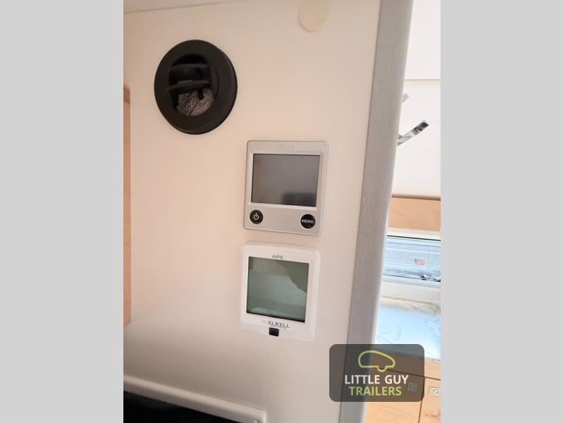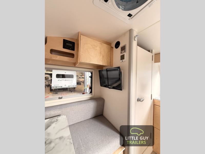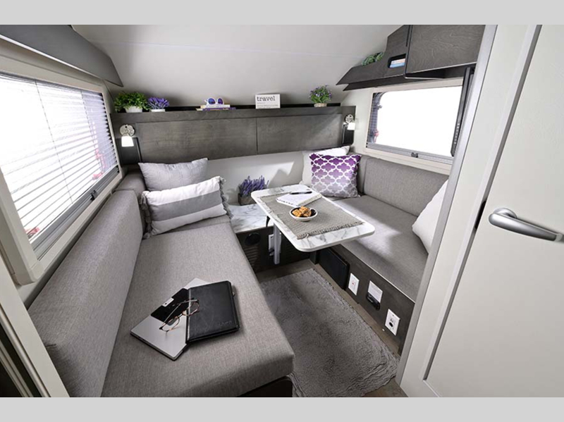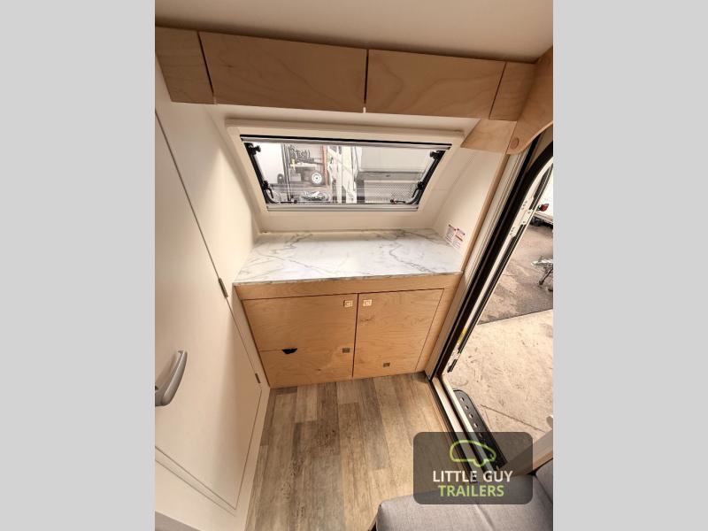With any TAB 320 teardrop trailer by nüCamp RV, the interior offers custom Ohio-Amish cabinetry, soft close cabinetry, a custom screen/shade system, and a wet bath with a cassette and built-in sink. The iconic teardrop design offers an easy-to-tow setup with amenities found in much bigger trailers. Some other highlights include the Alde central heat/hot water system, the central air conditioner, the Solar Roof package, and the Nautilus water management system. There is a Boondock package option available that would provide features such as aggressive off-road tires, an aluminum utility platform, a Boondock entry handle and graphics, plus more!