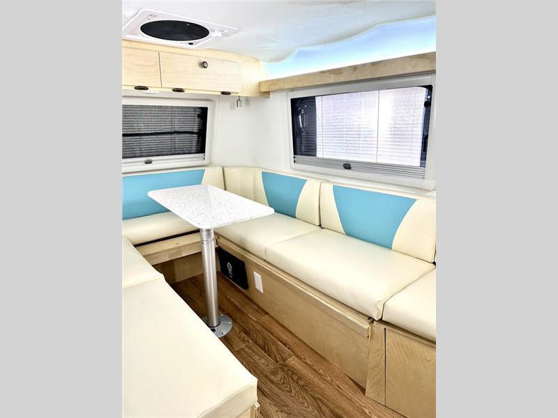Bigger is not always better, and this little MeerKat will prove that to any interested camping couple that is looking to tow behind their everyday car.  The MeerKat provides you a step up from tent camping where you can enjoy a dry place to sleep, eat, and store your things easily.  And the included porta potty allows you to skip the public facilities in the middle of the night.  The dinette table and wrap around seating can easily transform into a bed for a comfortable night's sleep.  Three opening windows will allow you to enjoy fresh air circulating throughout both day and night. You will find under seating storage, plus several cabinets to tuck your things out of sight when not in use, and the front countertop provides a handy sink, plus a one burner camp stove is also available along with an icebox for your perishables.  The MeerKat can easily be customized to suit your style of camping.  You can add an optional awning, front storage box for more gear, a refrigerator, or induction cooktop, plus more.  It's time to check this tiny camper out!