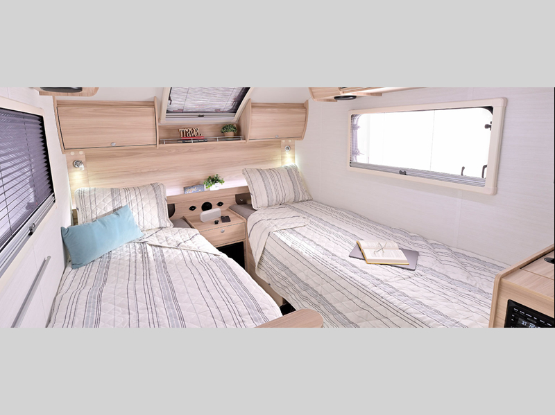 You're going to love camping in this teardrop clamshell trailer! Once you arrive at the campground, you can make lunch on the exterior rear hatch kitchen. There is a two-burner glass-top stove and a 30L 12-volt cooler here to quickly make lunch and grab a cold drink. The interior 5 cu. ft. 12-volt compressor refrigerator will provide more food storage, and an optional microwave can be added inside for the option to heat up quick meals indoors. You're sure to get a great night's rest on the twin-size bed, and the booth dinette can convert to a second twin-size bed so you can sleep two comfortably. When the optional Black Canyon upgrade is chosen on this model, you'll enjoy dual 190-watt solar panels, holding tank heaters, underglow lights, and an XL diamond plate storage tub.
