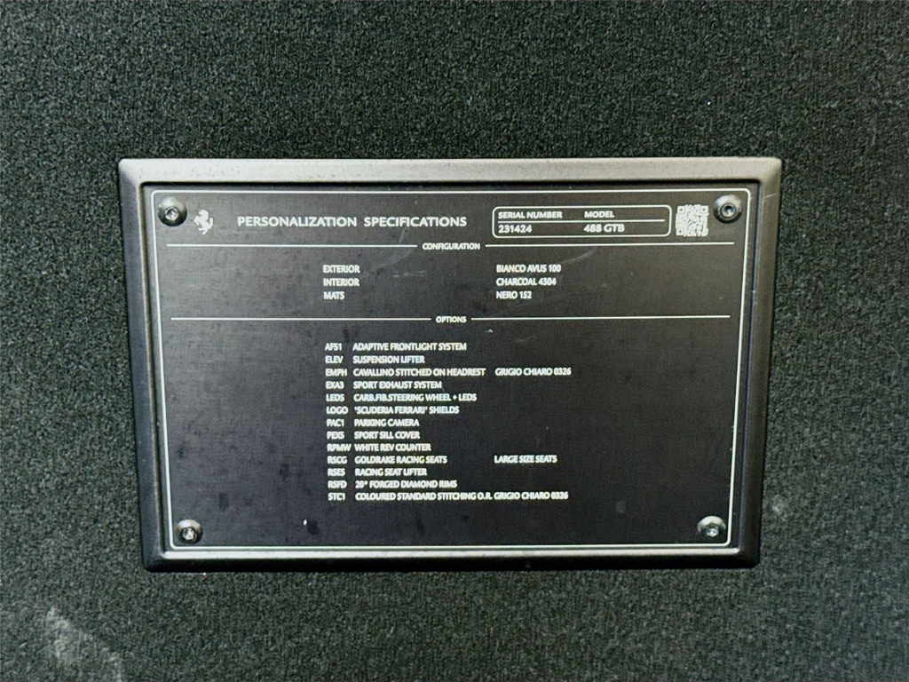 Luxury Auto Collection is proud to offer this beautiful 2018 Ferrari 488 GTB Custom Exhaust | Carbon Fiber Ext and Int Pkgs in Bianco Avus with Nero and only 30,882 miles.
