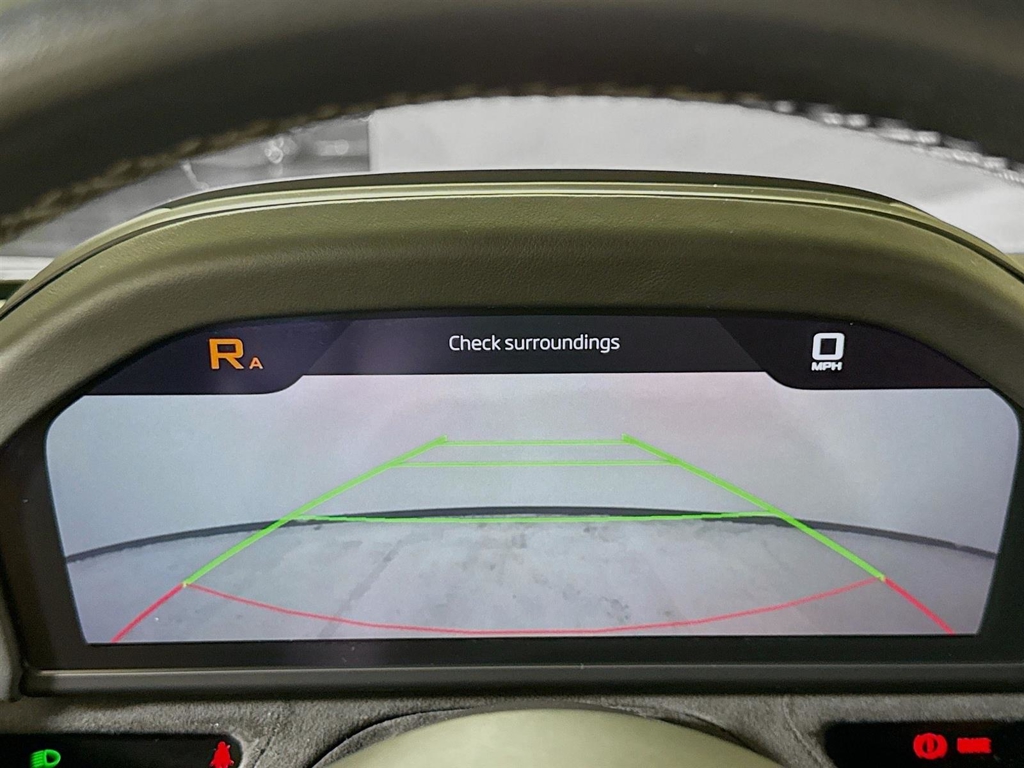 • The vehicle is equipped with a camera that displays an image of the area behind the vehicle on an interior display.