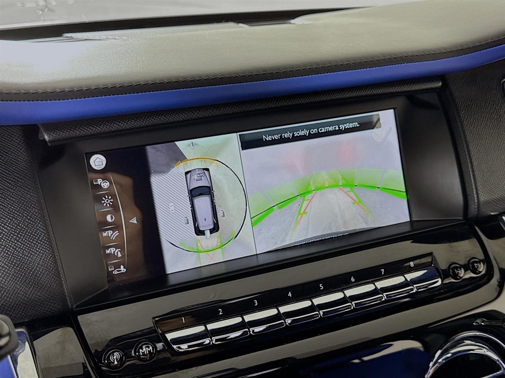 • The vehicle is equipped with a camera that displays an image of the area behind the vehicle on an interior display.