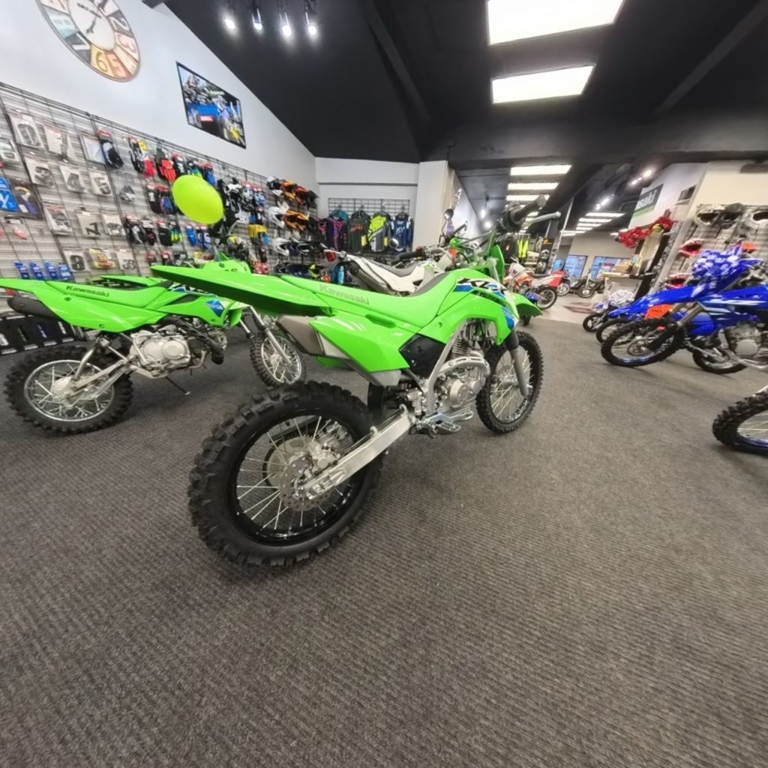 Featuring confident handling, KLX®140R motorcycles are the ideal entry into off-road riding. The easy-to-ride KLX140R lineup offers a 144cc engine, plush suspension, and push button electric start, making for great trailblazers.