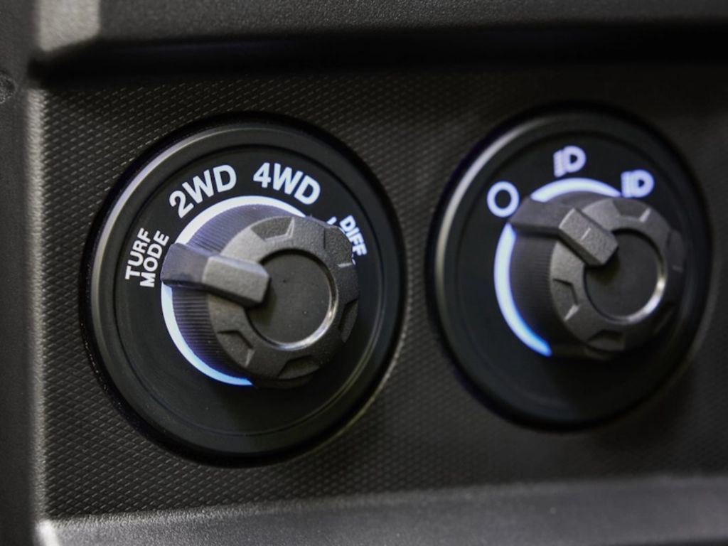 The On-Command four-wheel drive system now includes Turf Mode which unlocks the rear differential for a tighter turning radius and minimal turf damage, ideal for preserving your grass during household chores or any time you find yourself on delicate turf.