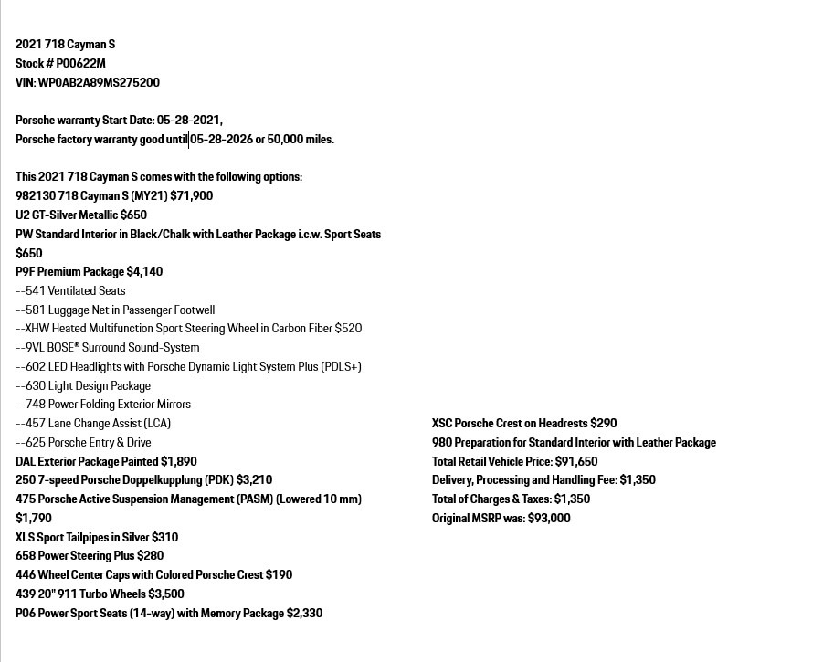 2021 Porsche 718 Cayman S Coupe