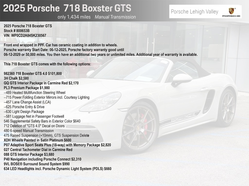 2025 Porsche 718 Boxster GTS 4.0 Convertible