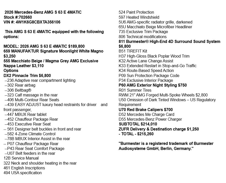 • Vehicle Trim: AMG® S 63 E Performance