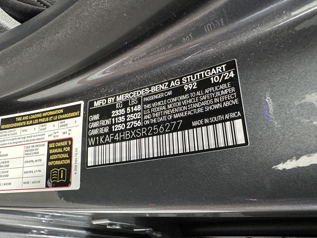 2025 Mercedes-Benz C 300 4-matic Stock #: L00715 VIN #: W1KAF4HBXSR256277 Mercedes Benz Warranty Start Date: 04/16/2025, Mercedes CPO warranty is good until 04/16/2030 or unlimited miles. Additional years of warranty are available. This 2025 Mercedes-Benz C 300 4-matic is equipped with the following options: MODEL: 2025 C300W4 $50,450 992 Selenite Grey Metallic $750 111 AMG Black MB-Tex Options DG3 AMG Line w/ Night Package $3,050 --486 Sport Suspension --5U4 Diamond Grille --772 AMG Body Styling --7U3 Sport Seats --B63 Sound generator --L5C Multifunction Sport Steering Wheel --P29 AMG Line Interior --P31 AMG Line Exterior -- P55 Night Package --U26 AMG Floor Mats -- U29 Sport Brake system with "Mercedes-Benz" lettering --U34 MB-Tex Dashboard with Nappa Look DX1 Exclusive Line $2,250 --01U Pre-installation for Navigation Services --12B Owners Manual --16U Apple CarPlay™ --17U Android Auto --249 Auto-dimming Driver and Rearview Mirrors --264 License Plate Holder --32U Sound personalisation --365 MB Navigation --367 Live Traffic 401 Heated & Ventilated Front Seats $450 413 Panorama Sunroof $1,000 443 Heated Steering Wheel $250 500 Power Folding Mirrors 501 Surround View Camera 517 HD Radio 51U Black Headliner 587 Side Mirror Logo Projector 679 Product protection-partial protection 783 Radio remote control with panic switch 805 Technical modifications 810 Burmester® Surround Sound System 871 HANDS FREE ACCESS 894 Enhanced Ambient Lighting 986 Identification label with VIN number 989 VIN Code B51 TIREFIT Kit H04 Natural Grain Black Wood w/ Aluminum Lines $200 P47 Surround View System P82 Guard 360 Vehicle Protection Plus PAV Winter Package PBG MBUX Navigation Premium PDB Advanced Plus Package R01 High Performance Tires R06 Low-Noise Performance Tires RVC 19" AMG Multispoke Wheels w/ Black Accents $600 U01 Rear belt status indication in the instrument display U25 Illuminated Door Sills U50 Omission of Dark Tinted Windows – US Regulatory Requirement D07 Wheel Locking Bolts $160 D10 Rear Spoiler, Body Color $350 D49 First-Aid Kit $35 SUBTOTAL $59,545 ZUFR Delivery & Destination charge $1,150 Original MSRP was: $60,695
