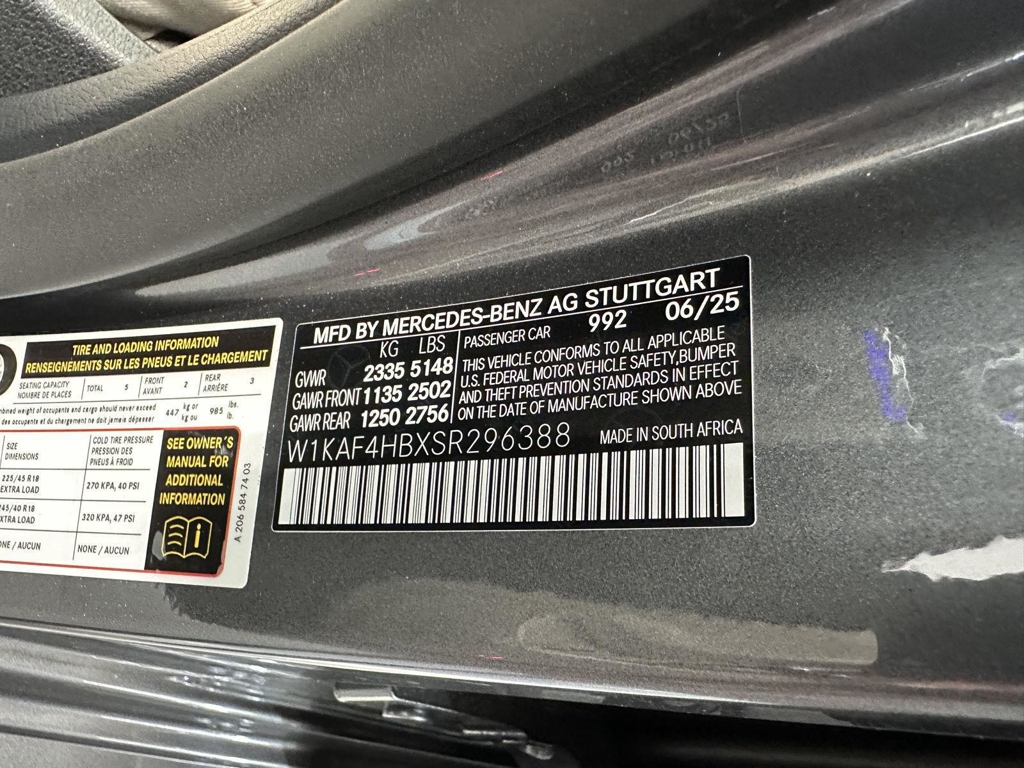 2025 Mercedes-Benz C 300 4-matic Stock #:702517 VIN #: W1KAF4HBXSR296388 --32U Sound personalisation --810 Burmester® Surround Sound System --894 Enhanced Ambient Lighting --P47 Surround View System -- P82 Guard 360 Vehicle Protection Plus -- PBG MBUX Navigation Premium --PDB Exclusive Package Factory Code 01U Pre-installation for Navigation Services 055 Modification year 24/2 12B Owners Manual 16U Apple CarPlay™ 17U Android Auto 249 Auto-dimming Driver and Rearview Mirrors 264 License Plate Holder 365 MB Navigation 367 Live Traffic 401 Heated & Ventilated Front Seats $450 413 Panorama Sunroof $1,000 443 Heated Steering Wheel $250 500 Power Folding Mirrors 501 Surround View Camera 517 HD Radio 51U Black Headliner 587 Side Mirror Logo Projector 679 Product protection-partial protection 783 Radio remote control with panic switch 7U2 Seat Type 2 805 Technical modifications 871 HANDS FREE ACCESS 986 Identification label with VIN number 989 VIN Code H03 Glossy Brown Ash Wood PAV Winter Package R02 All Season Tires R66 Extended Mobility Tires R86 18" Multispoke Wheels U01 Rear belt status indication in the instrument display U45 Illuminated Door Sills D07 Wheel Locking Bolts $160 D10 Rear Spoiler, Body Color $350 D45 Animated LED Logo Projector $310 SUBTOTAL $55,970 ZUFR Delivery & Destination charge $1,150 - TOTAL - $57,120 "Burmester is a registered trademark of Burmester Audiosysteme GmbH, Berlin, Germany."