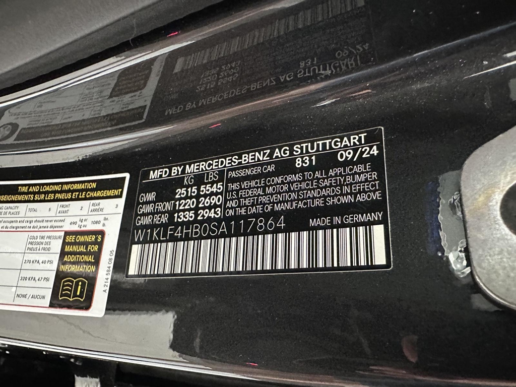 2025 Mercedes-Benz E 350 4-matic Stock #:L00698 VIN #: W1KLF4HB0SA117864 Mercedes Benz Warranty Start date: 03/13/2025, This 2025 Mercedes-Benz E 350 4-matic is equipped as follows: MODEL: 2025 E350W4 $64,950 831 Graphite Grey Metallic $750 201 Black Leather $1,620 Options DA2 Driver Assistance Package $1,950 --233 Active Distance Assist DISTRONIC® -- 243 Active Lane Keeping Assist -- 266 Active Distance Assist DISTRONIC® with Active Steering Assist --292 Pre-Safe Impulse Side --513 Traffic Sign Assist --546 Active Speed Limit Assist --P20 Driver Assistance Package DB0 Winter Package $450 --443 Heated Steering Wheel --875 Heated Washer System --PAV Winter Package DB1 Leather Package $800 --401 Heated & Ventilated Front Seats --P34 Leather package code --U34 MB-Tex Dashboard with Nappa Look 12B Owners Manual 16U Apple CarPlay™ 17U Android Auto 21U Dashcam $200 262 Rear sensors for the lane departure assistant 272 Evasive manoeuvre support 679 Product protection-partial protection 783 Radio remote control with panic switch 7U2 Seat Type 2 805 Technical modifications 883 Soft-Close Doors $550 94B Integrated Starter Generator Generation 2 B01 EQ Boost 48V System B51 TIREFIT Kit K32 Active Lane Change Assist K33 Extended Restart in Stop-and-Go Traffic K34 Route-Based Speed Action L2B Nappa Leather Steering Wheel R01 High Performance Tires RVQ 20" AMG Multispoke Wheels with Grey Accents $1,950 D07 Wheel Locking Bolts $160 D10 Rear Spoiler, Body Color $400 D26 Load Sill Protector $250 D45 Animated LED Logo Projector $310 SUBTOTAL $74,340 ZUFR Delivery & Destination charge $1,150 Original MSRP was: $75,490