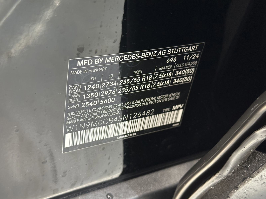 *Stock #:702190VIN:W1N9M0CB4SN126482**This Mercedes-Benz EQB 250+ SUV* *Features the Following Options:**MODEL: 2025 EQB250W $53,050696 Night Black101 Black MB-Tex*Options*DA2 Driver Assistance Package $1,700*--239 Active Distance Assist DISTRONIC®--243 Active Lane Keeping Assist--266 Active Distance Assist DISTRONIC® with Active Steering Assist--299 PRE-SAFE®--546 Active Speed Limit Assist--P79 Driving Assistance Package055 Modification year 24/212B Owners Manual*232 Garage Door Opener $280*261 Deletion of Fender Badges264 License Plate Holder461 English Inscriptions494 USA specification*501 Surround View Camera $600513 Traffic Sign Assist $300*668 Sea Packing & Dispatch66B Charging socket679 Product protection-partial protection805 Technical modifications*873 Heated Front Seats $500*986 Identification label with VIN numberK33 Extended Restart in Stop-and-Go TrafficK34 Route-Based Speed ActionP47 Surround View SystemR01 High Performance Tires*D07 Wheel Locking Bolts $160D49 First-Aid Kit $35*D52 Mercedes Me Charge CardD55 Mobile Flex Charging CableD60 Electric Vehicle Charging Brochure*SUBTOTAL $56,625ZUFR Delivery & Destination charge $1,150- TOTAL - $57,775*