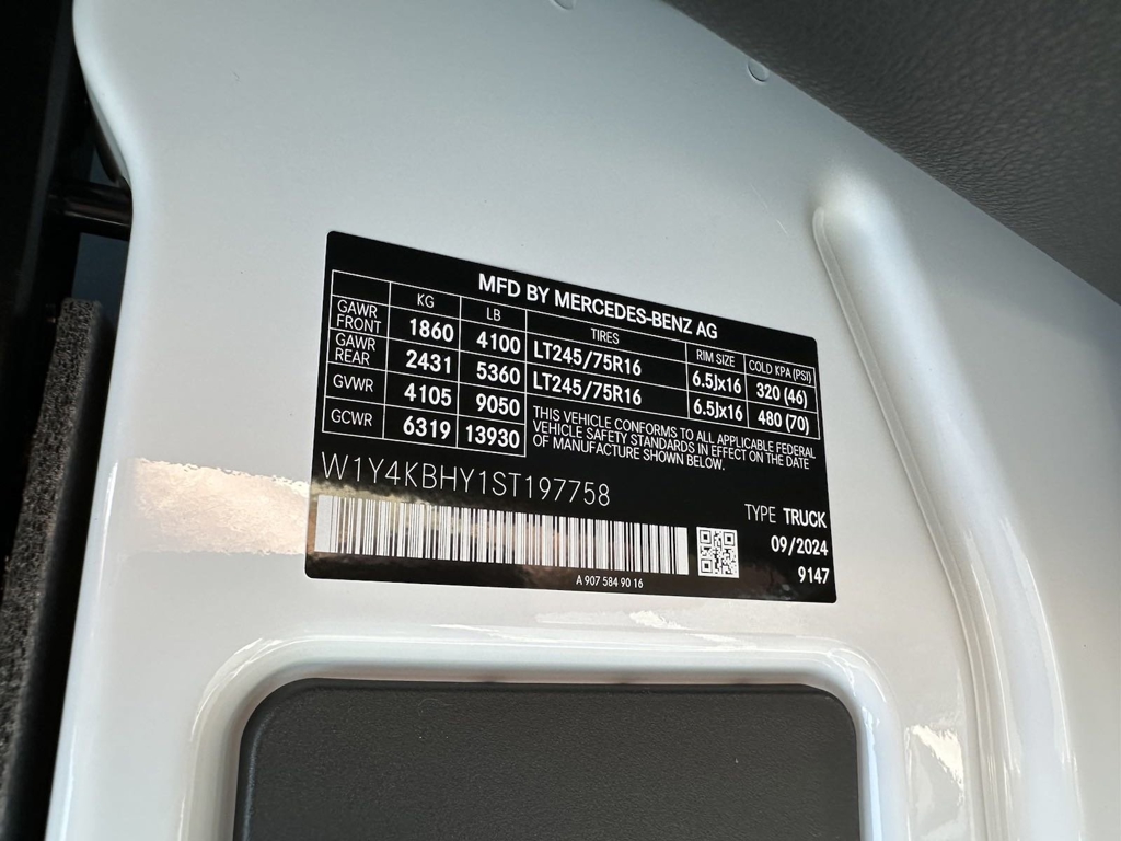 *Stock #:700413VIN:W1Y4KBHY1ST197758**This Mercedes-Benz Sprinter Cargo Van Comes Equipped with These Options**MODEL: 2025 M2CA4S $50,8309147 Arctic White*Options*C00PKG Comfort Package $311*--LC4 Comfort overhead control panel--SE4 Lumbar support, co-driver's seat--SE5 Lumbar support, driver's seat--SK0 Comfort head restraint, driver--SK1 Comfort head restraint, co-driver*C01PKG Driver Convenience Package $456*--E46 12 V power outlet, driver seat base--F64 Electrically folding exterior mirrors--FJ1 Hinged lid for storage compartment--FJ5 Hinged Lid for Storage Compartments left and right--FZ9 Keys, two additional masters--JW8 Attention Assist*C0SPKG Comfort Package (Seat addition) $433*--SB1 Comfort driver's seat--SB2 Comfort passenger seat*CR1PKG Rear Door Convenience Package $483*--T85 Assist handle, left rear door--W54 Rear doors, opening to side wall--W5F Additional block for rear doors at 90 degrees*D03 High roof $3,550*EC8 Pre-Installation: Remote Engine Start*EE3 115 V socket $142ES5 Charging package, dashboard $93*RF8 Tire brand Michelin*RM9 Specially requested tires $115T74 Assist handle, B-pillar $37T75 Door-mounted assist handles, driver & passenger $70V43 Wood floor with 6 D-rings $480VA3 Side wall paneling full hardboard $504*VF7 Fabric Maturin Black*W73 Bumper step, rear, grey $212SUBTOTAL $57,716ZUFR Delivery & Destination charge $2,295- TOTAL - $60,011*