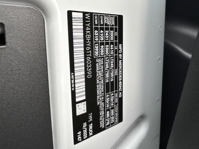 2026 Mercedes-Benz Sprinter Cargo Van 2500 Standard Roof I4 Diesel 144 RWD VIN #: W1Y4KBHY6TT603390 Stock #: 900522 Exterior Color: Arctic White Interior Color: Fabric Maturin Black ARCTIC WHITE